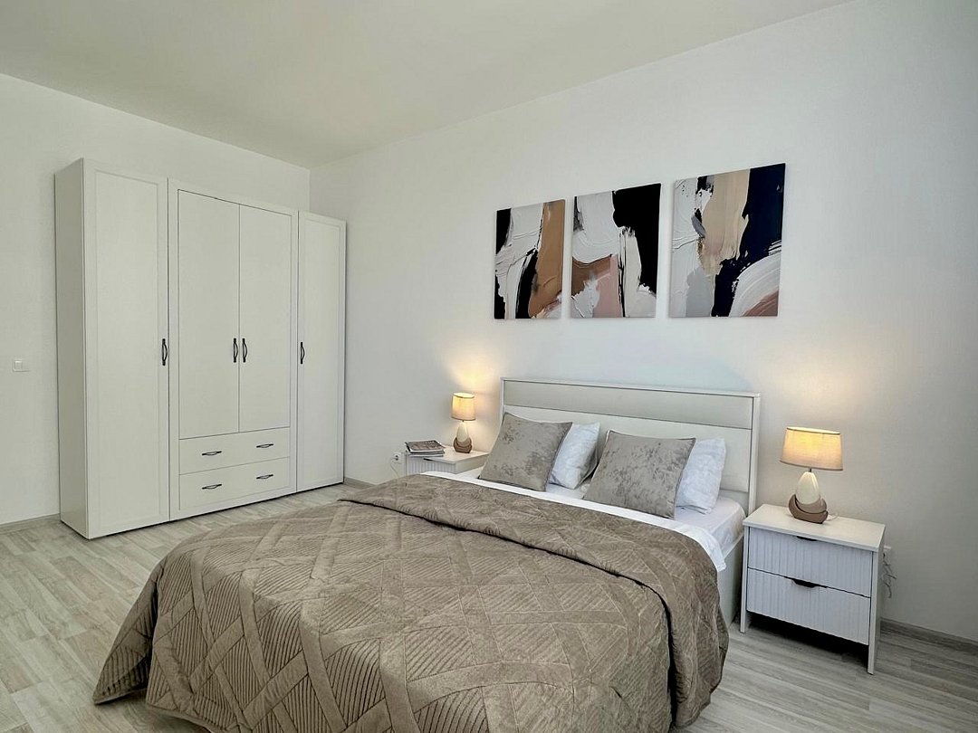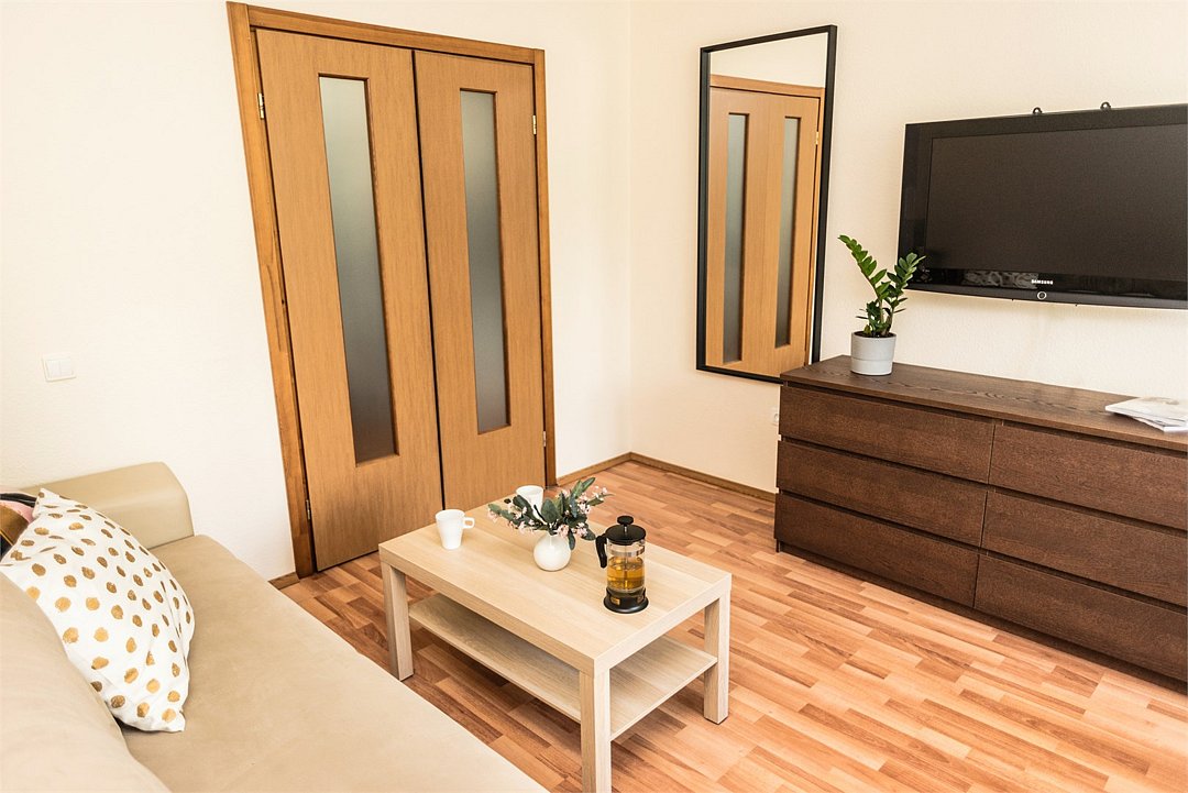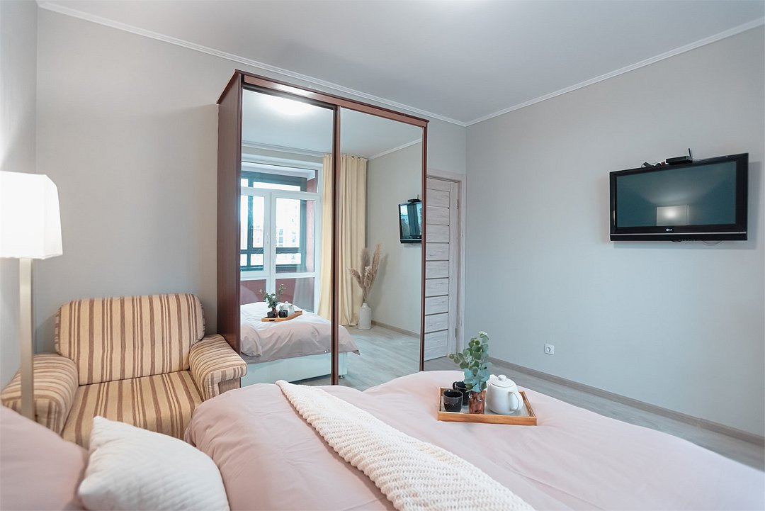 Wi-Fi, интернет, холодильник, светильник, фен, плита для приготовления пищи, микроволновая печь, утюг, ванна, санузел, банные полотенца, тапочки, гигиенические средства, две двуспальные кровати, гладильная доска, стулья, вешалки, обеденный стол, зеркало, комод, две комнаты, кухня, набор посуды, стиральная машина, чайник, раковина, мягкая мебель, обеденная зона, отопление, вид на город, кухонная посуда, кухонная утварь, столовые приборы, тумба, туалетные средства, туалет, сушилка для белья, телевизор с плоским экраном, телевизор со Smart TV, номер для некурящих, морозильная камера, два дивана-кровати, духовка, набор для приготовления чая и кофе, без питомцевВ апартаментах