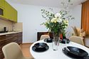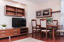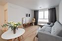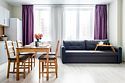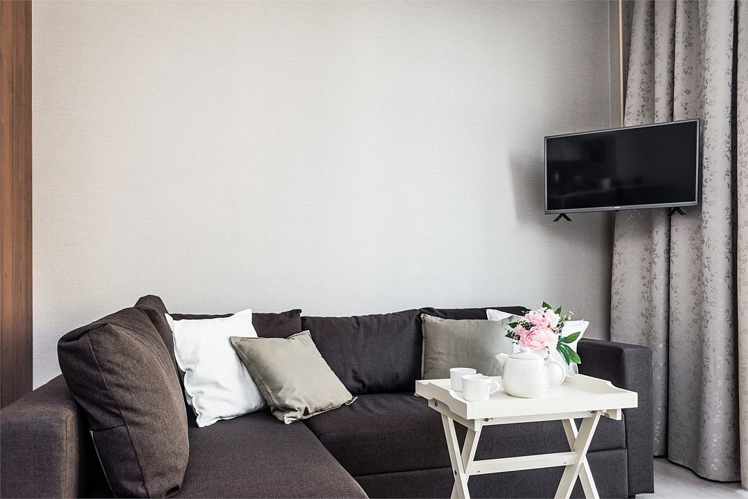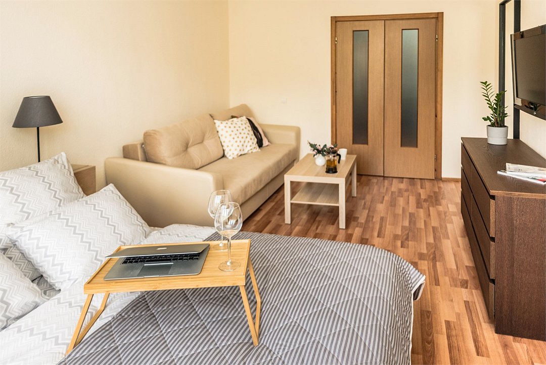 телевизор, Wi-Fi, интернет, фен, микроволновая печь, утюг, душевая кабина, тапочки, двуспальная кровать, стулья, шкаф для одежды, журнальный столик, зеркало, мини-бар, письменные принадлежности, чайник, унитаз, отопление, вид на город, центральное кондиционирование, ламинат, кухонная посуда, стаканы, кухонная утварь, столовые приборы, кофейный столик, туалетные средства, туалет, цифровое тв, диван-кровать, мини-холодильник, кухонный уголок, номер для некурящих, без питомцевВ апартаментах