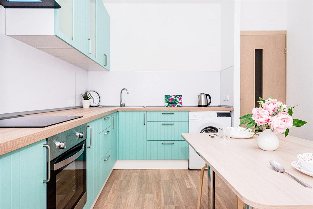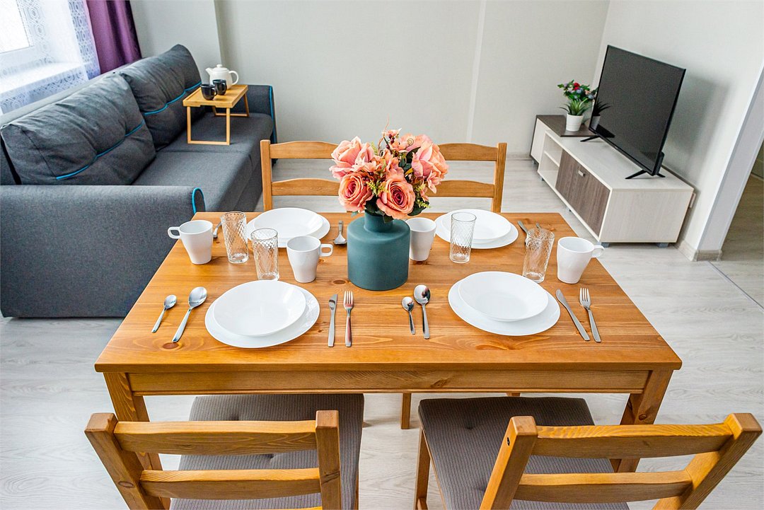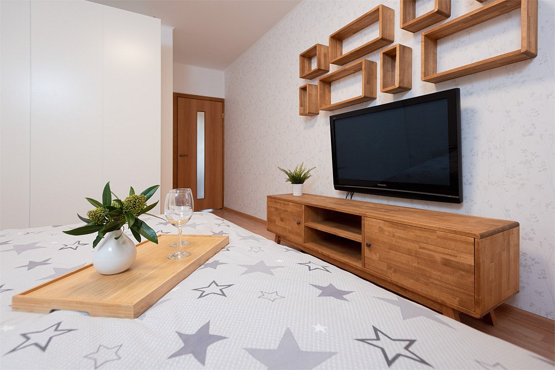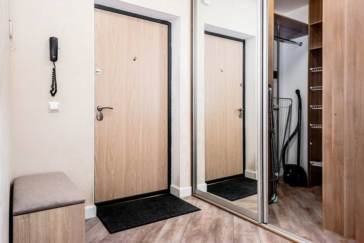Wi-Fi, интернет, светильник, фен, плита для приготовления пищи, микроволновая печь, утюг, санузел, банные полотенца, гигиенические средства, двуспальная кровать, гладильная доска, стулья, шкаф для одежды, вешалки, барная стойка, зеркало, мини-бар, набор посуды, стиральная машина, чайник, раковина, обеденная зона, отопление, душ, кухонная посуда, столовые приборы, тумба, туалетные средства, туалет, сушилка для белья, телевизор с плоским экраном, мини-кухня, телевизор со Smart TV, набор для приготовления чая и кофе, без питомцевВ квартире