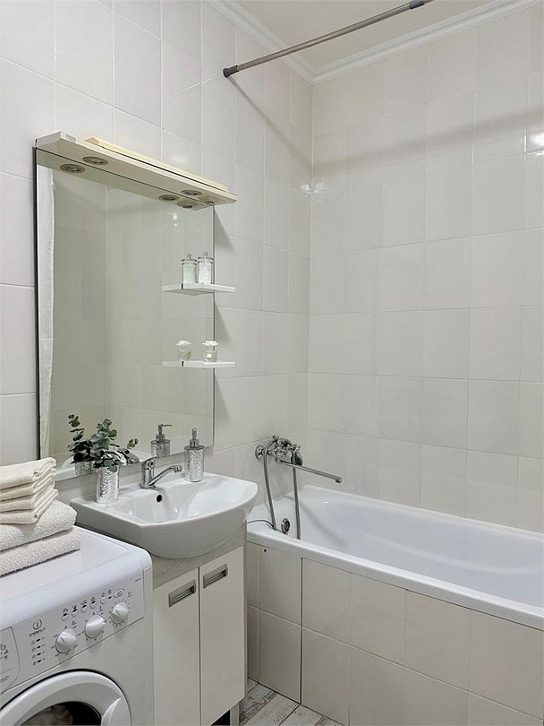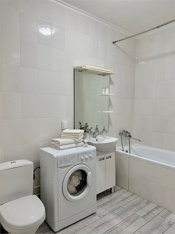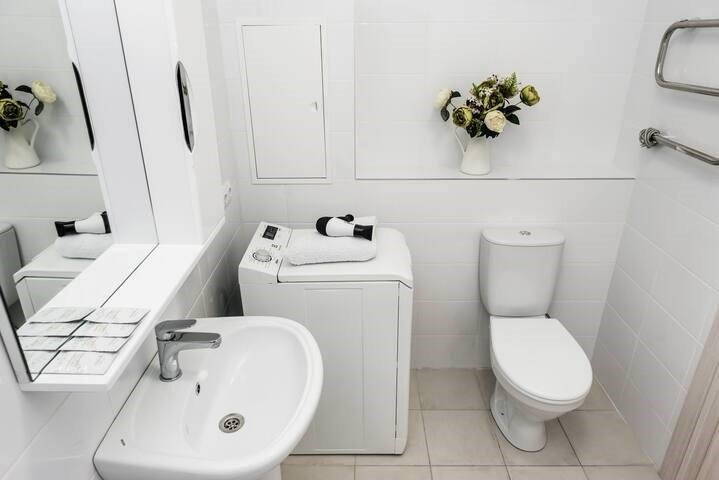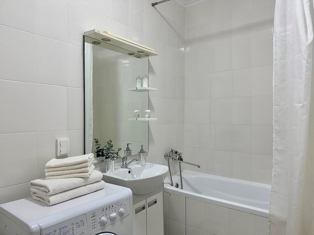 Wi-Fi, интернет, светильник, фен, плита для приготовления пищи, микроволновая печь, утюг, ванная комната, ванна, санузел, банные полотенца, гигиенические средства, двуспальная кровать, гладильная доска, стулья, вешалки, обеденный стол, зеркало, кухня, мини-бар, набор посуды, стиральная машина, чайник, раковина, обеденная зона, отопление, кухонная посуда, столовые приборы, тумба, туалетные средства, туалет, сушилка для белья, телевизор с плоским экраном, мини-холодильник, телевизор со Smart TV, номер для некурящих, набор для приготовления чая и кофе, без питомцевВ квартире