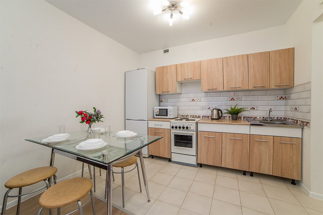 Приглашаем остановиться в чистой, ухоженной квартире вместимостью до 4 человек. Тихий район и выгодное расположение сделают Ваше пребывание еще более комфортным. Расположение: - ДИВC - УРГуПС - Юр. Академия - Олимпийская набережная - «Локомотив» школа фигурного катания - Продуктовый магазин-Яблоко - КТ «Космос» - ТЮЗ - Клиники микрохирургии глаз имени академика Святослава Федорова В шаговой доступности продуктовый магазины: Яблоко. Квартира полностью укомплектована всей необходимой мебелью и бытовой техникой. Для каждого гостя предоставляются постельное бельё, полотенца и туалетные принадлежности. Бесплатный Wi-Fi и Smart TV. Преимущества: -100% соответствие жилья описанию и фото -Круглосуточное заселение -Отчетные документы командированным -Чисто. Уборка после каждого гостя. -Не прокурена -Тихие соседи -Полная автономия и уютная обстановка, как дома. -Любой удобный способ оплаты. Для юр лиц возможна оплата на счет организации Правила: —заезд после 15:00. Выезд до 12:00. Для гарантированного раннего заезда необходимо забронировать квартиру за сутки до вашей запланированной даты заезда. Без предварительного бронирования ранний заезд предоставляется по возможности и не гарантируется. Поздний выезд обсуждается индивидуально. — за 2 часа до заезда необходимо с нами связаться. — по предварительному бронированию заселяем круглосуточно. В случае заезда в ночное время необходимо связаться заранее днем и сообщить планируемое время приезда! — для заселения при себе иметь: любой документ, удостоверяющий личность (паспорт, в/у) и залоговую сумму 3000 рублей. Залог возвращается в течение дня после отъезда и проверки квартиры. Перед заселением необходимо пройти онлайн-регистрацию. Без прохождения онлайн-регистрации заселение невозможно. Подробная информация по заселению будет направлена вам после бронирования. Наши квартиры не сдаются для мероприятий, в них не курят и соблюдают порядок в тихие часы! Не сдается лицам младше 23 лет. Бронируйте прямо сейчас!Услуги и удобства