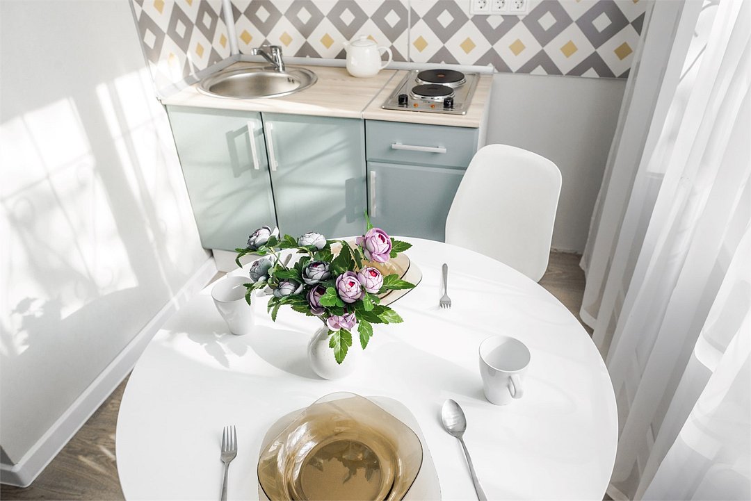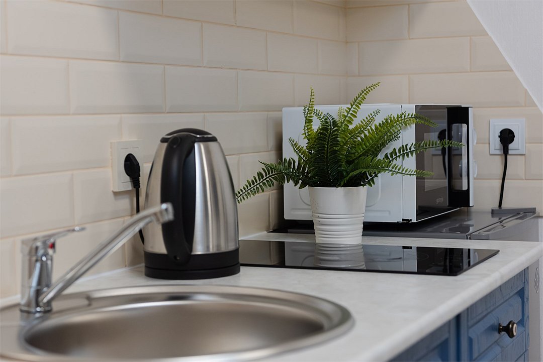 Wi-Fi, интернет, светильник, фен, плита для приготовления пищи, микроволновая печь, утюг, санузел, банные полотенца, гигиенические средства, двуспальная кровать, гладильная доска, стулья, вешалки, комод, набор посуды, чайник, раковина, обеденная зона, отопление, душ, вид во двор, кухонная утварь, столовые приборы, туалет, сушилка для белья, телевизор с плоским экраном, мини-холодильник, кухонный уголок, телевизор со Smart TV, номер для некурящих, набор для приготовления чая и кофе, без питомцевВ студии