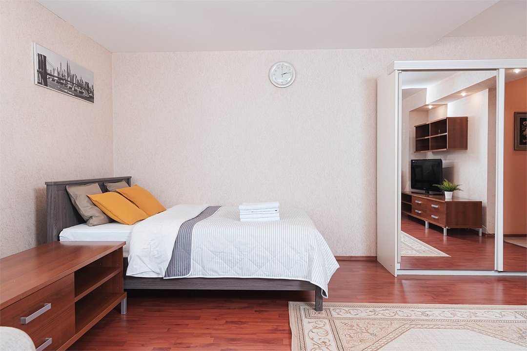 кабельное телевидение, Wi-Fi, интернет, светильник, фен, плита для приготовления пищи, микроволновая печь, утюг, санузел, банные полотенца, гигиенические средства, двуспальная кровать, гладильная доска, тумбы, стулья, шкаф для одежды, вешалки, обеденный стол, зеркало, комод, мини-бар, набор посуды, стиральная машина, чайник, раковина, обеденная зона, отопление, душ, вид на город, кухонная посуда, столовые приборы, туалетные средства, туалет, сушилка для белья, телевизор с плоским экраном, мини-холодильник, мини-кухня, телевизор со Smart TV, номер для некурящих, набор для приготовления чая и кофе, без питомцевВ квартире