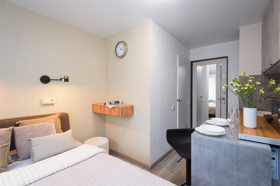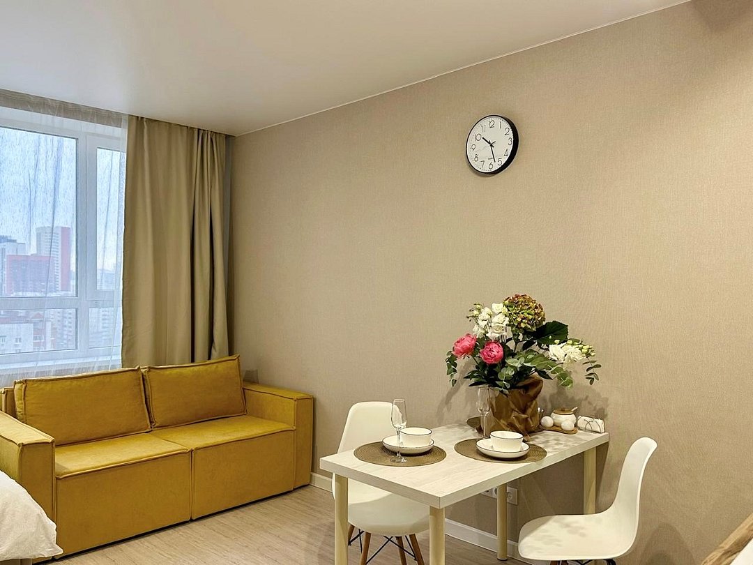 Командировка с коллегами, встреча с близкими друзьями или долгожданная романтическая поездка? Для длительного проживания либо краткосрочного в уральской столице подойдут наши апартаменты, отличающийся привлекательным дизайном. Доступно бесконтактное заселение. В пешей доступности: - Машиностроительный завод им. М.И.Калинина - Пэпсико холдингс - УрТАТис - ЖД Вокзал - Северный автовокзал - м. Уральская - Музей энергетики Урала - ТРЦ Veer Mall - Дворец культуры Железнодорожников - Marins Park Hotel Оснащение: Студия полностью укомплектована всей необходимой мебелью и бытовой техникой. Для каждого гостя предоставляются постельное бельё, полотенца и туалетные принадлежности. Бесплатный wi-fi и smаrt тv. Почему выбирают нас -100% соответствие фотографиям -Круглосуточное заселение -Отчетные документы командированным -Не прокурена -Тихие соседи -Конфиденциальность -Любой удобный способ оплаты. Для юр лиц возможна оплата на счет организации Правила заселения: —заезд после 15:00. Выезд до 12:00. Для гарантированного раннего заезда необходимо забронировать квартиру за сутки до вашей запланированной даты заезда. Без предварительного бронирования ранний заезд предоставляется по возможности и не гарантируется. Поздний выезд обсуждается индивидуально. — за 2 часа до заезда необходимо с нами связаться. — по предварительному бронированию заселяем круглосуточно. В случае заезда в ночное время необходимо связаться заранее днем и сообщить планируемое время приезда! —для заселения при себе иметь: любой документ, удостоверяющий личность (паспорт, в/у) и залоговую сумму 3000 рублей. Залог возвращается в течение дня после отъезда и проверки квартиры. Перед заселением необходимо пройти онлайн-регистрацию. Без прохождения онлайн-регистрации заселение невозможно. Подробная информация по заселению будет направлена вам после бронирования. Наши квартиры не сдаются для мероприятий, в них не курят и соблюдают порядок в тихие часы! Не сдается лицам младше 23 лет. Бронируйте прямо сейчас и ни о чем не беспокойтесь!Услуги и удобства