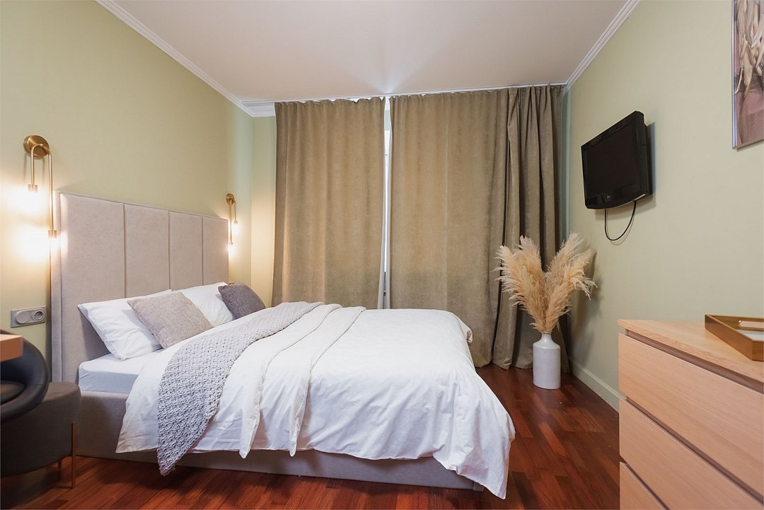 кабельное телевидение, Wi-Fi, интернет, холодильник, настольные лампы, фен, плита для приготовления пищи, микроволновая печь, утюг, ванна, санузел, банные полотенца, гигиенические средства, две двуспальные кровати, гладильная доска, стулья, шкаф для одежды, вешалки, обеденный стол, зеркало, мебельный гарнитур, кухня, мини-бар, набор посуды, посудомоечная машина, стиральная машина, чайник, раковина, обеденная зона, отопление, вид на город, две спальни, вид во двор, кухонная посуда, кухонная утварь, столовые приборы, туалетные средства, туалет, сплит-система, сушилка для белья, диван-кровать, телевизор с плоским экраном, телевизор со Smart TV, номер для некурящих, морозильная камера, духовка, набор для приготовления чая и кофе, без питомцевВ квартире