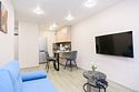 кабельное телевидение, Wi-Fi, интернет, холодильник, светильник, фен, плита для приготовления пищи, микроволновая печь, утюг, ванна или душевая кабина, санузел, банные полотенца, гигиенические средства, двуспальная кровать, гладильная доска, шкаф для одежды, вешалки, обеденный стол, зеркало, кухня, набор посуды, стиральная машина, чайник, обеденная зона, отопление, кухонная посуда, столовые приборы, туалетные средства, туалет, сушилка для белья, диван-кровать, телевизор с плоским экраном, телевизор со Smart TV, набор для приготовления чая и кофе, без питомцевВ квартире