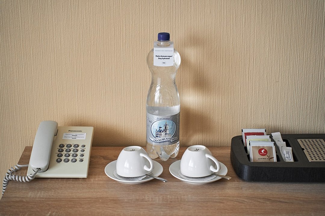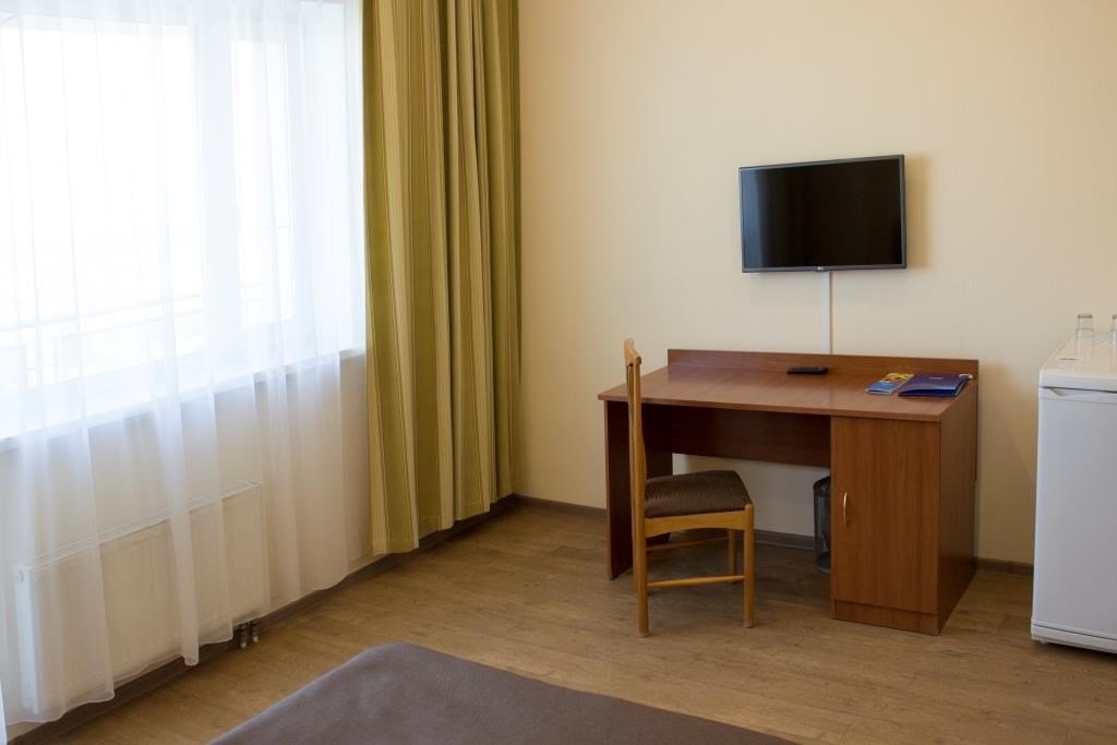 кабельное телевидение, Wi-Fi, телефон, холодильник, кондиционер, настольные лампы, фен, электронные замки, обогреватель, ванная комната, ванна, халаты, банные полотенца, тапочки, гигиенические средства, косметические средства, полутораспальная кровать, тумбы, шкаф для одежды, вешалки, зеркало, мини-бар, письменные принадлежности, обслуживание номеров, информационная карта, меню, раковина, питьевая вода, отопление, вид на город, кулер на этаже, плиточное покрытие, ламинат, стаканы, стул, стол, туалетные средства, туалет, телевизор с плоским экраном, мини-холодильник, москитная сетка, гостиничная парфюмерия, рабочий стол, услуги прачечной (платно), мылоВ гостиничном номере