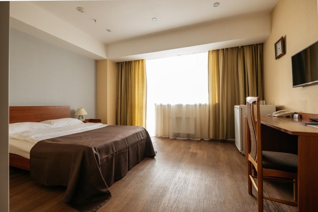 Номер, выполненный в классическом выдержанном стиле. В номере: двуспальная кровать, кондиционер, спутниковое телевидение, телефон с международной и междугордней связью, Wi-Fi доступ в Интернет, зона для работы, ванная комната с классической ванной, холодильник. Для гостей: косметический набор для ванны и душа, комплект полотенец, халат — по запросу, тапочки, фен и телефон в ванной комнате.Услуги и удобства