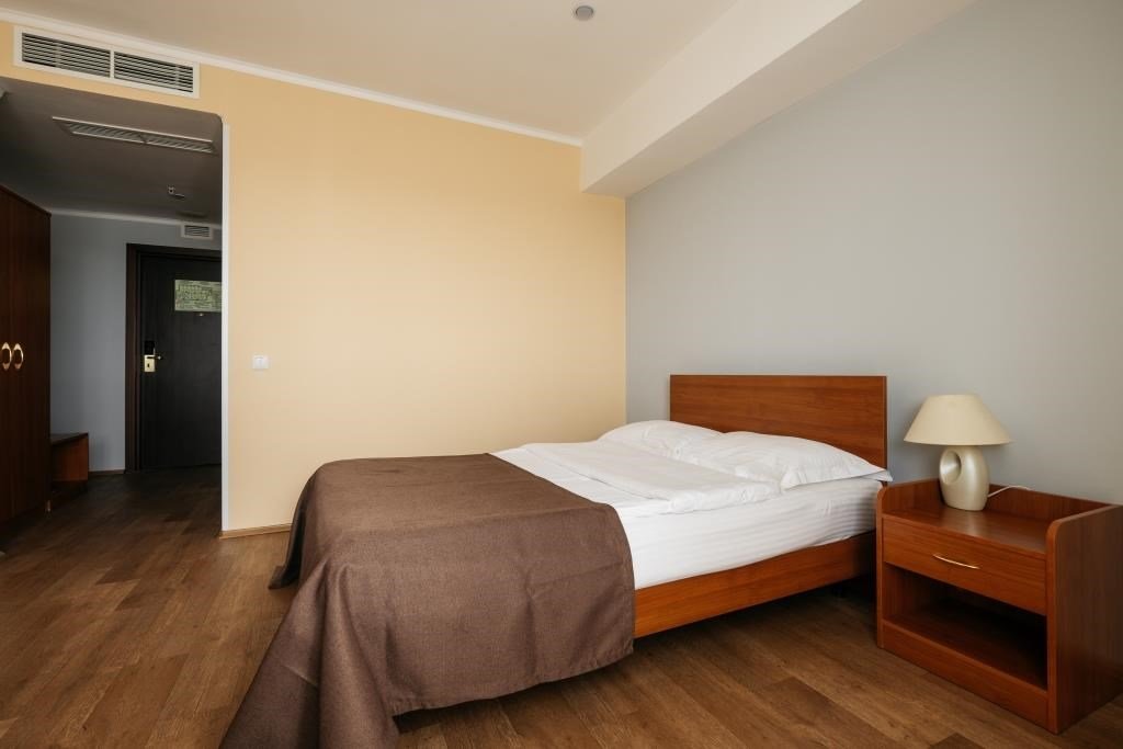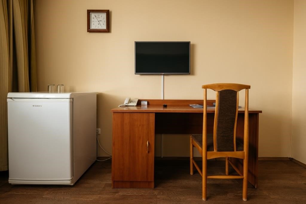 Номер, выполненный в классическом стиле, для комфортного проживания одного человека. В номере: просторная полутороспальная кровать, система фанкойлов, спутниковое телевидение, телефон с междугородней связью, wi-fi доступ в интернет, ванная комната с классической ванной, холодильник. В номере имеется рабочая зона в виде письменного стола. Для наших гостей: косметический набор для ванны и душа, комплект полотенец, фен, по запросу - тапочки, зубной набор.Услуги и удобства
