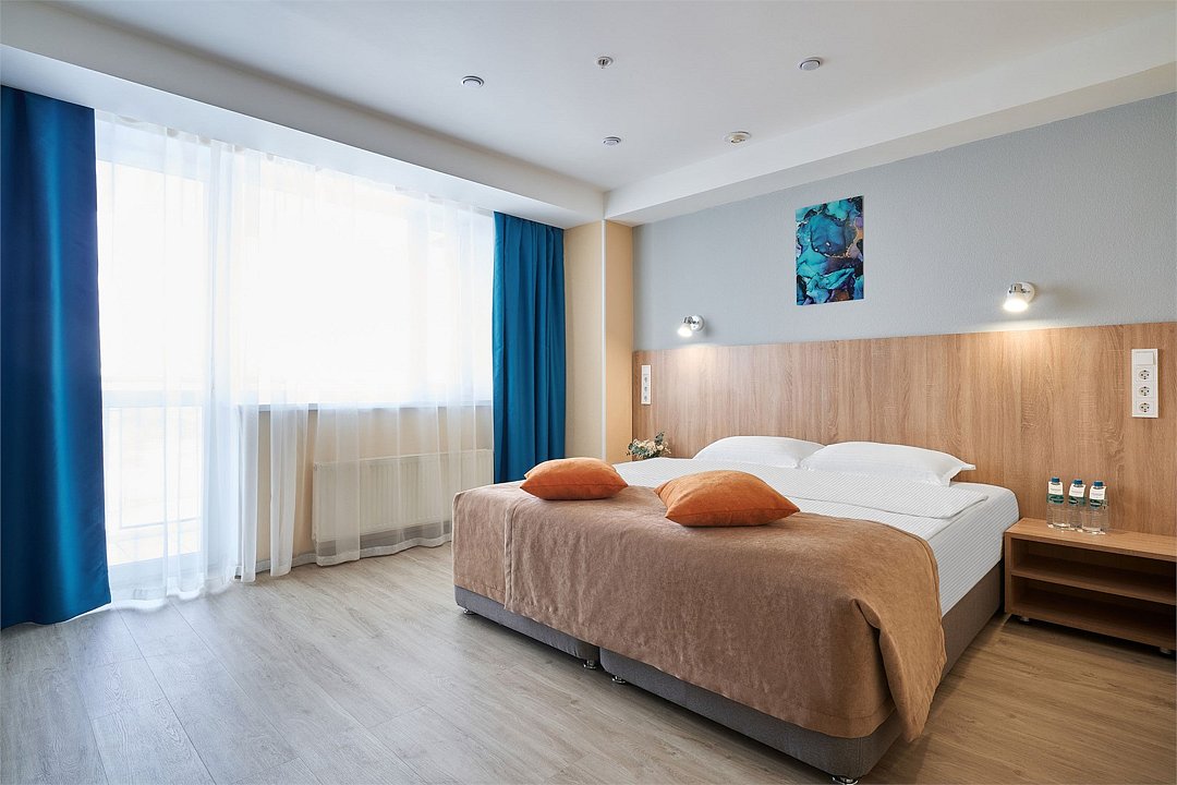 14-этажный корпус отеля соединен со зданием аквапарка, океанариумом и развлекательным центром (Планета ИГРиК, кинотеатр, батутный парк, спортклуб). Для проживания предусмотрено 126 номеров различных категорий, включая семейные с возможностью 4-местного размещения. Все номера оснащены санузлом, удобной мебелью, ТВ, холодильником, телефоном, кондиционером, феном, тапочками, халатами (частично), доступом Wi-Fi.