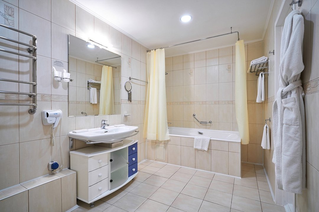 Джуниор Сюит для проживания 1-2 гостей. В номере: двуспальная кровать, кондиционер, спутниковое телевидение, телефон с международной и междугордней связью, Wi-Fi, зона для работы, ванная комната с классической ванной. Для гостей: косметический набор для ванны и душа, комплект полотенец, халат, тапочки, фен и телефон в ванной комнате.Услуги и удобства