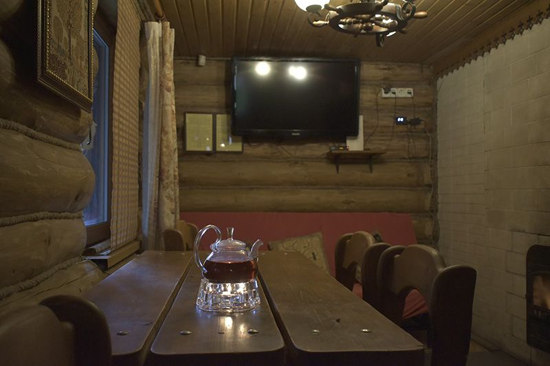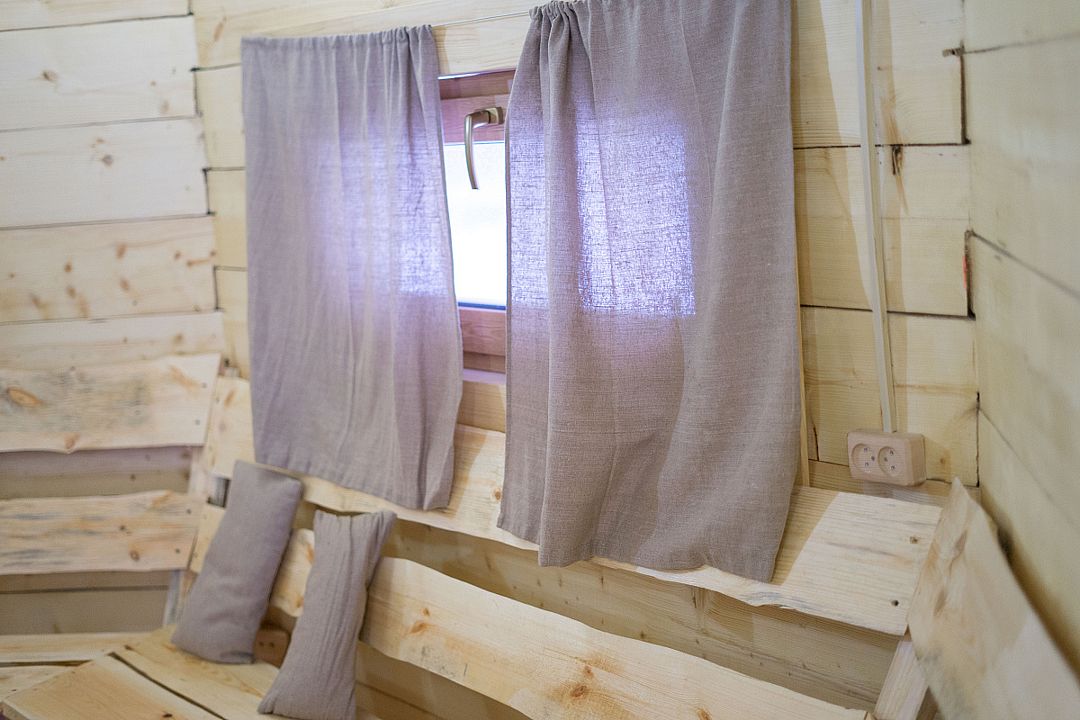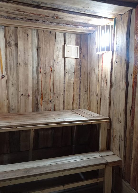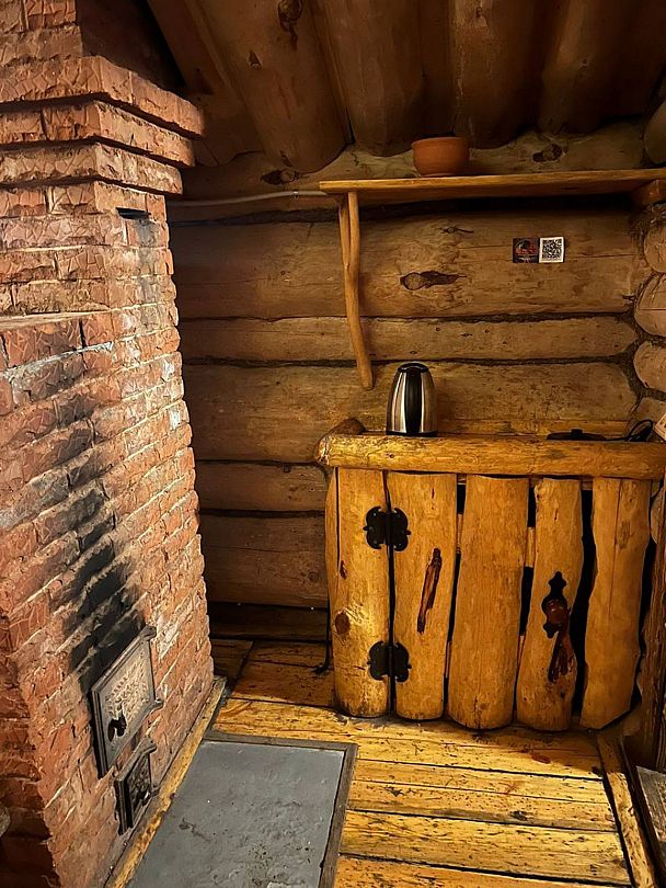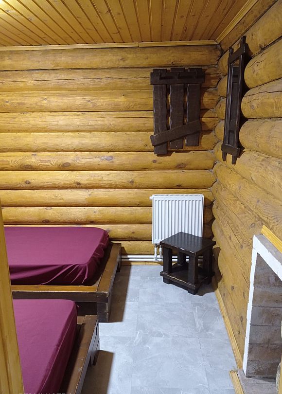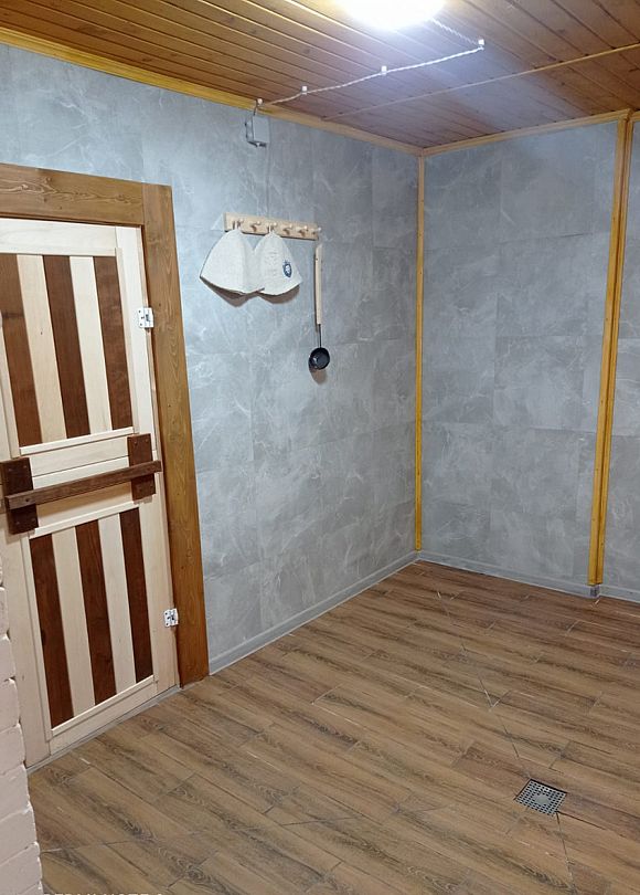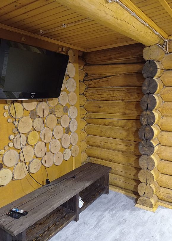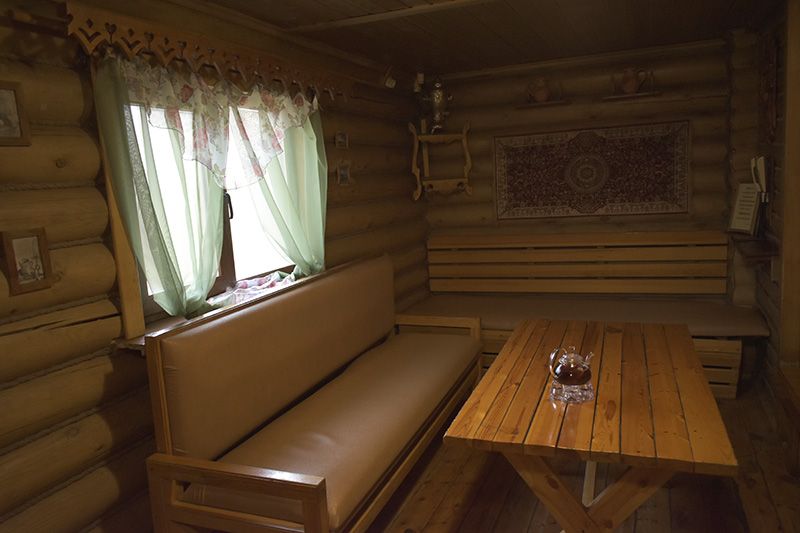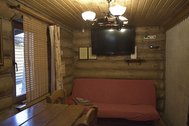 Инфраструктура: тапочки, чан, зона отдыха, простыни, шапочки, обливное ведро, душУютная русская баня на дровах, идеально подходящая для компаний до восьми человек. Внутри предусмотрена парная, которая комфортно разместит до шести гостей, а также есть отдельная комната для отдыха с телевизором и сервировкой на четыре персоны.