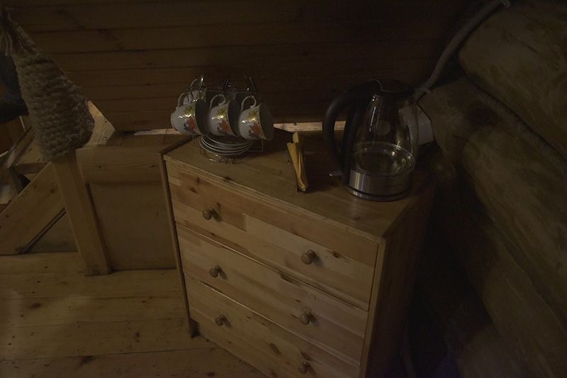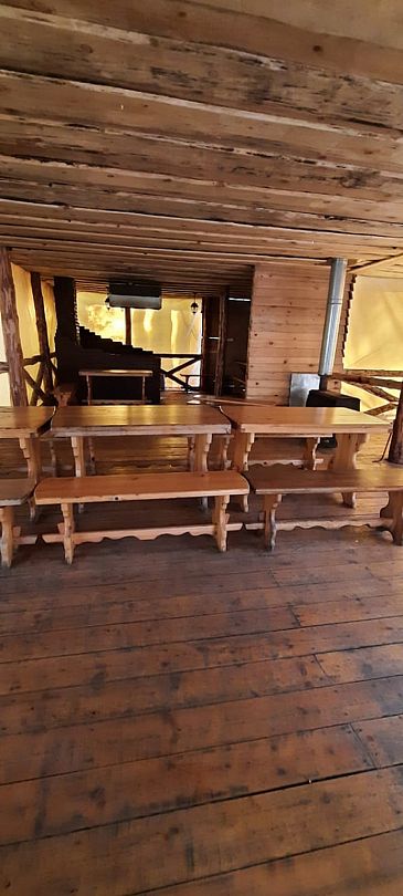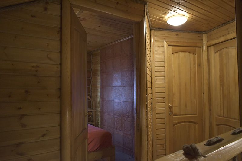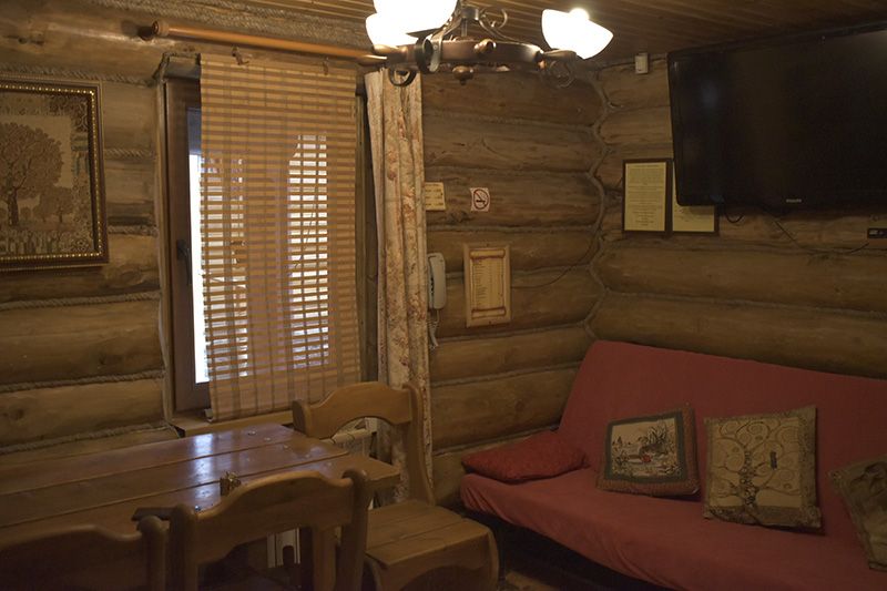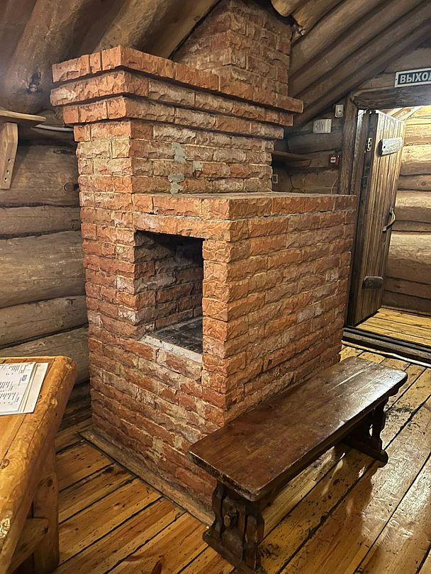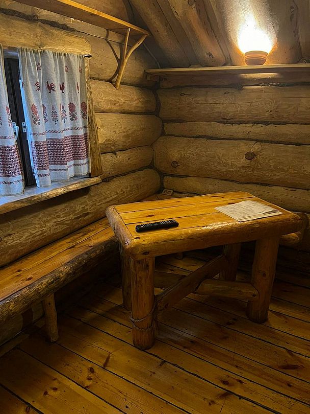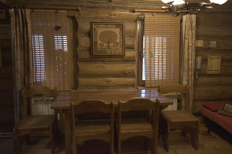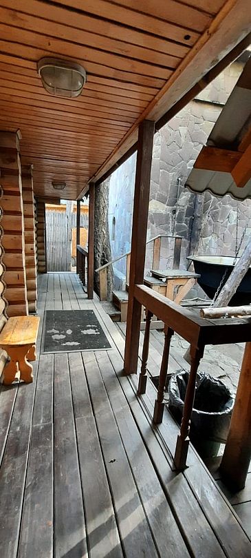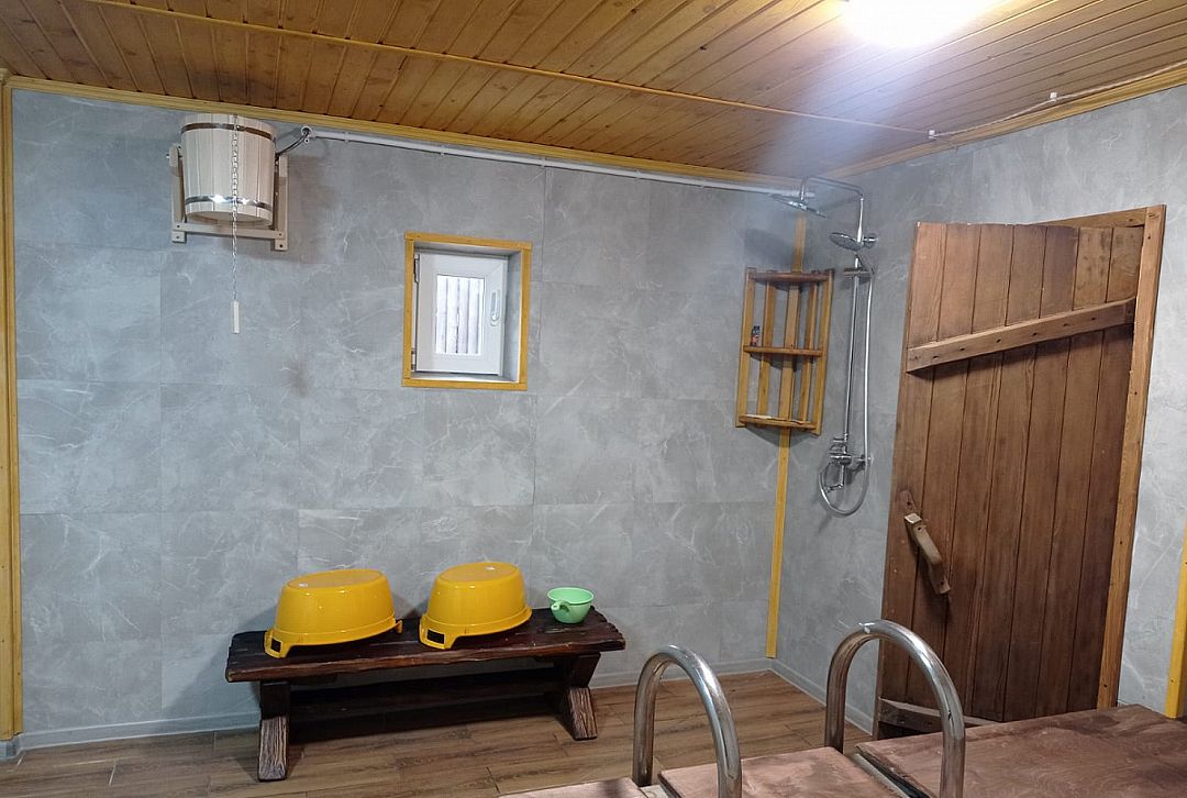 Инфраструктура: тапочки, чан, зона отдыха, простыни, шапочки, обливное ведро, душУютная русская баня на дровах, идеально подходящая для компаний до восьми человек. Внутри предусмотрена парная, которая комфортно разместит до шести гостей, а также есть отдельная комната для отдыха с телевизором и сервировкой на четыре персоны.