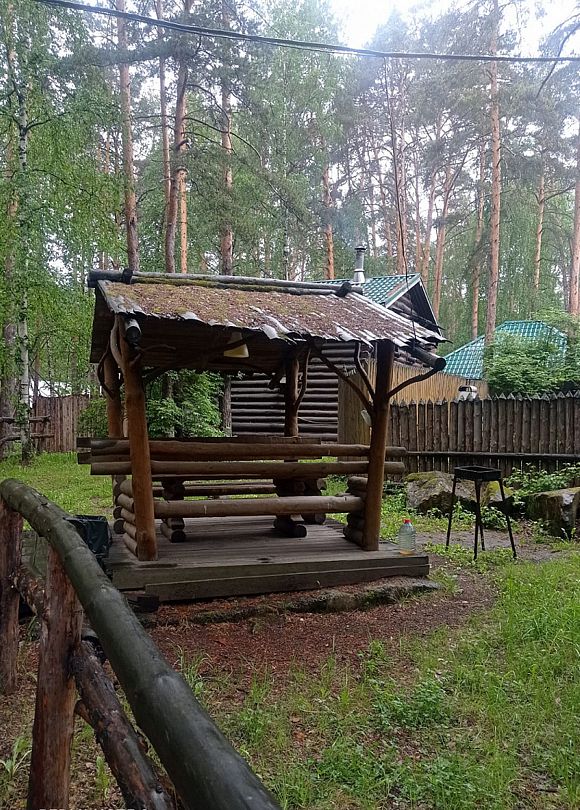 В беседке предусмотрены розетки и освещение, что добавляет удобства, а общий туалет в шаговой доступности обеспечивает необходимый комфорт. Предоставляется три килограмма угля, что позволяет сразу начать готовить вкусные блюда на свежем воздухе.