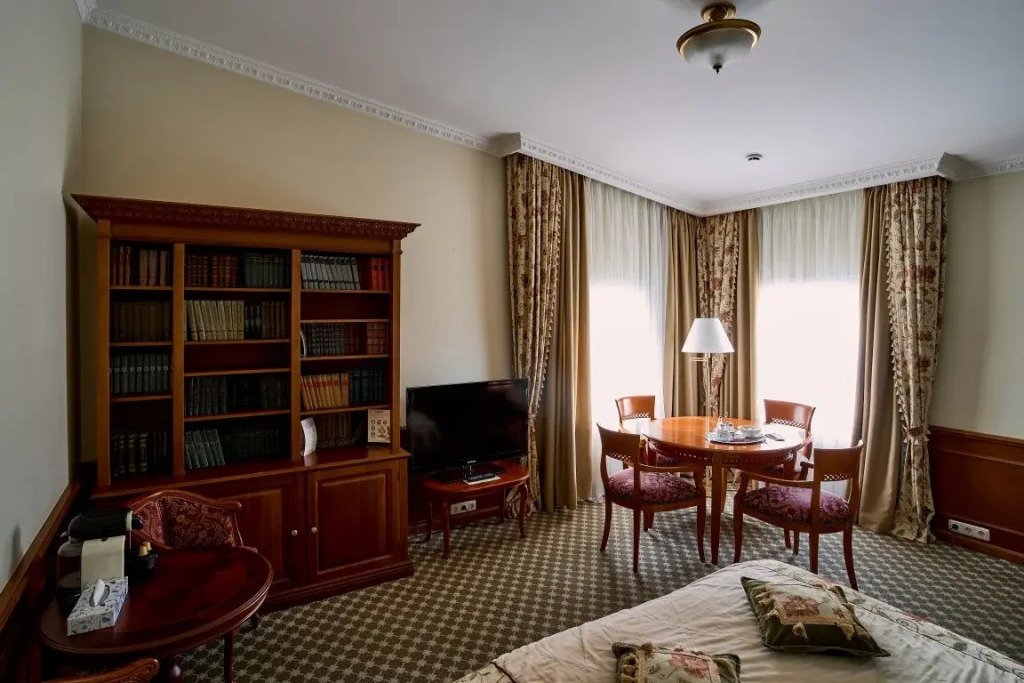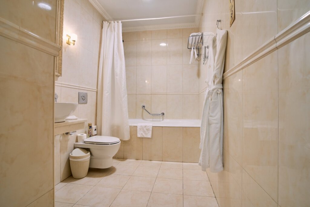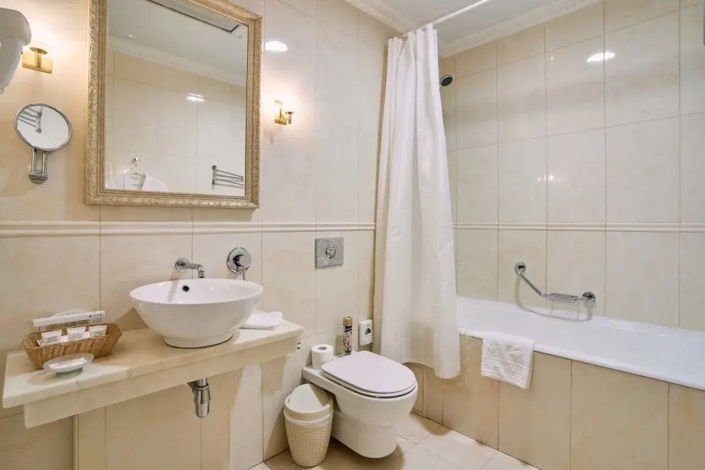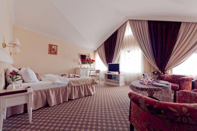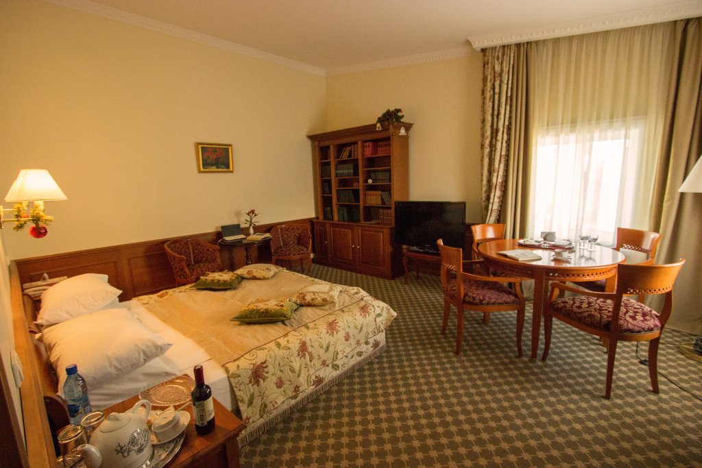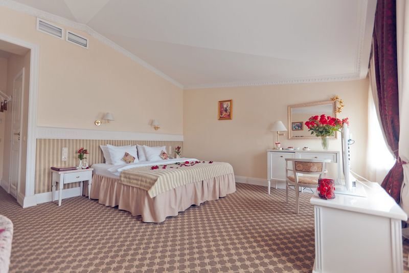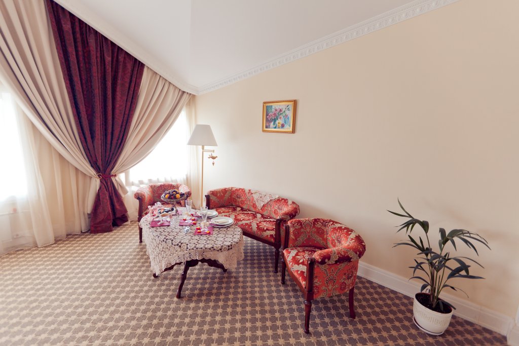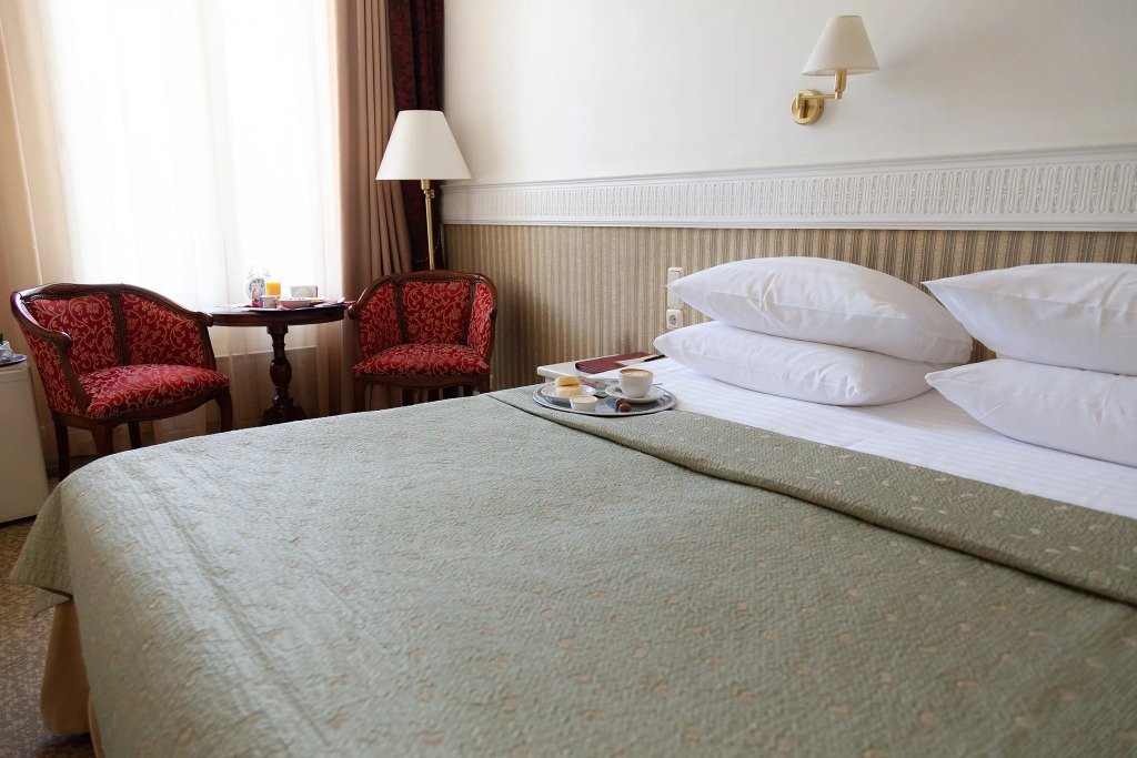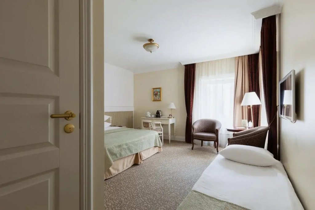 Площадь стандартного номера — 19.0 кв.м. В номере вас будут ждать телевизор, мини-бар, халат и тапочки. Перечисленные услуги есть не во всех номерах.