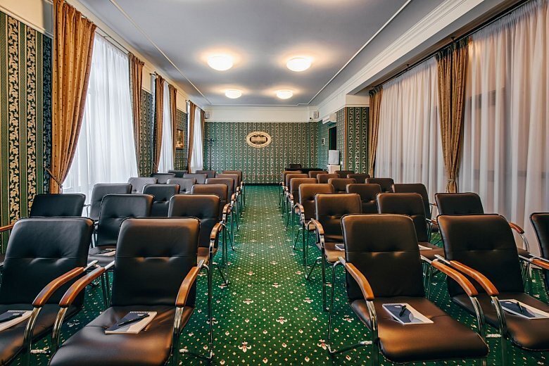 Для проведения бизнес-мероприятий оборудовано 2 конференц-зала: «Покровский» (72 кв.м. на 80 мест) на 4 этаже и «Вознесенский» (72 кв.м. на 60 мест) на 2 этаже отеля. Примерно одинаковые по вместимости, залы оформлены в разных стилевых решениях. Первый зал более сдержан в интерьере, второй выполнен в традициях начала прошлого века. Оба зала обеспечены всем необходимым – современной системой кондиционирования, проекционным, осветительным и звуковым оборудованием. Возможен заказ дополнительного оборудования и питания любого формата.
