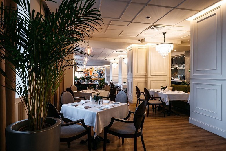 Утонченный и благородный дизайн интерьера придаст особую атмосферу любому мероприятию и впечатлит гостей. Ресторан может вместить до 90 гостей в зависимости от рассадки.