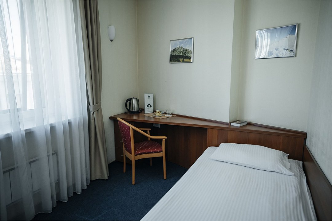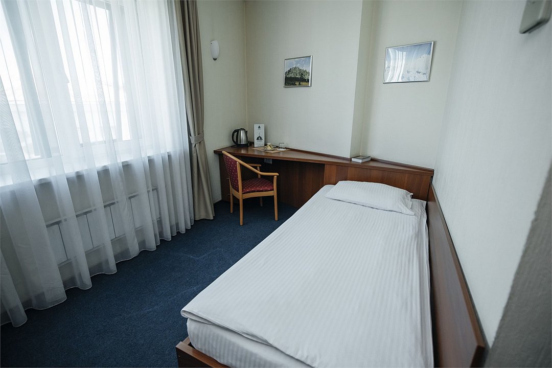 Подойдет для командировки. В номере: односпальная кровать 80*200, телевизор, мини-бар, шкаф, стол, стул/полукресло, чайные принадлежности, wi-fi. В санузле: душевая кабина, набор полотенец, фен.Услуги и удобства