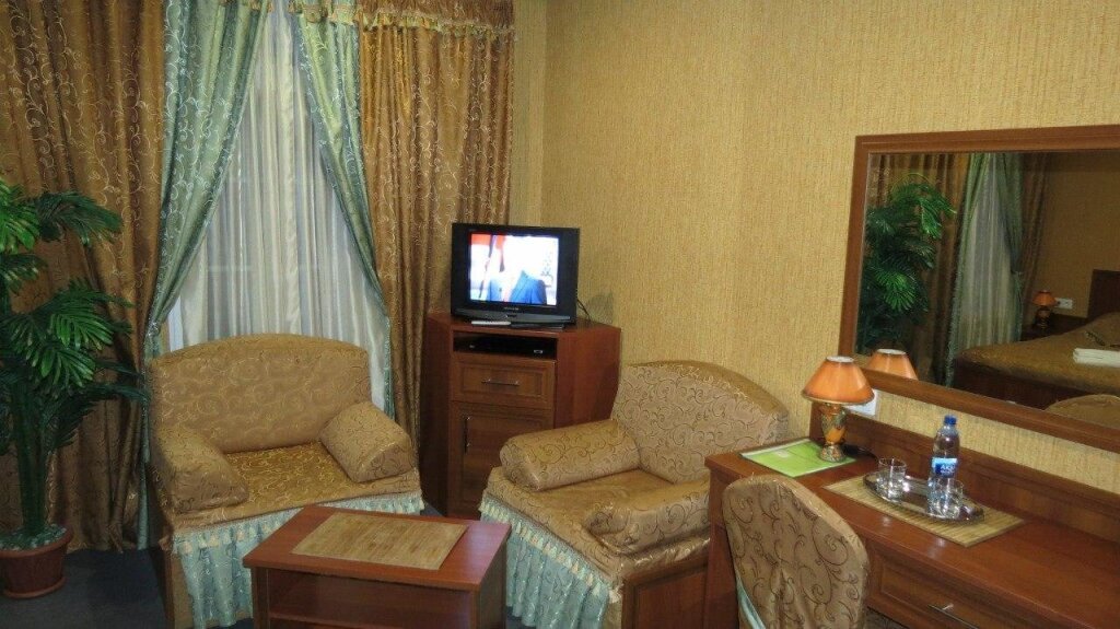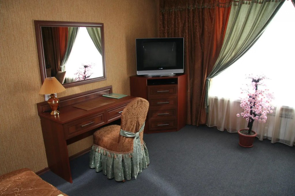 К услугам гостей предоставляются комфортные номера различных категорий: от Стандарта до Двухуровневого люкса. Все гостиничные номера оснащены мебелью, телевизорами, холодильниками, бесплатным Wi-Fi, душевыми кабинами или ванной. Для гостей имеются бесплатная охраняемая парковка, библиотека, кафе-гриль в стиле дикого Запада с едой навынос. На территории отеля расположена беседка с мангалом, где можно приготовить шашлык, финская сауна и русская баня с бассейнами и парилками, банкетный и каминный залы. Любимцев не придётся оставлять дома: разрешается проживание с питомцем за дополнительную плату. Дополнительно: прачечная, индивидуальная регистрация заезда и отъезда и гладильные услуги.