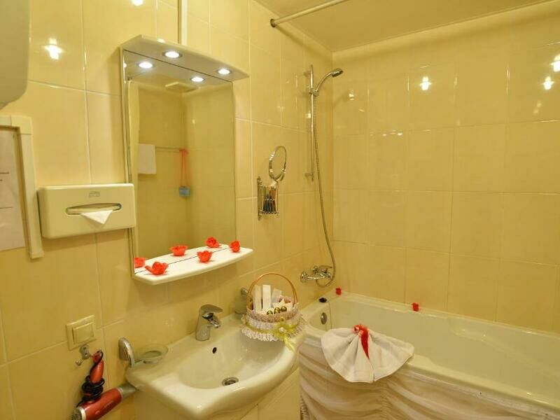 Путешествие с паройПриятно провели времяПосетили отель вместе с моим женихом. Сотрудники любезные, с улыбкой встретили и проводили до номера. Там нас ждала приятная и милая обстановка. Красивые лебеди на кровати, все в лепестках, очень романтично и красиво. Так же был стол с шампанским и фруктами, все было свежее, аккуратно выложенное. Номер большой, полноценный, есть душевая и мыльный набор, все чистенько, постель ароматно пахла. Мы переоделись и пошли в сауну, она входила в стоимость, там мы хорошо расслабились, напарились и пошли отдыхать. На утро нас обрадовал вкусный завтрак, который принесли прямо в номер, он еще даже не успел остыть. За это удовольствие мы заплатили не так много, еще и скидка была, остались довольны.