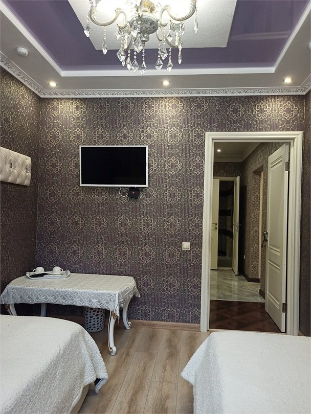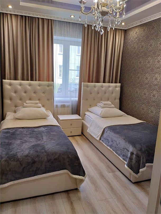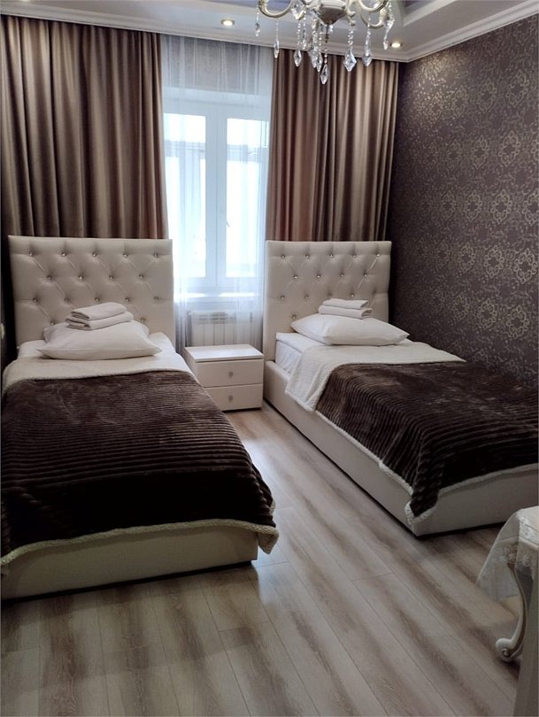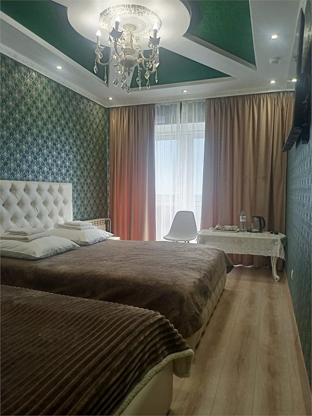 Комфортный номер категории "Люкс" с двумя раздельными кроватями отлично подойдёт для тех, кто ценит комфорт и выбирает только самое лучшее! Просторные, большие номера, отличающиеся изысканными интерьерами и расширенным набором услуг. Площадь номера 15 кв.м, собственная внешняя ванная комната, тапочки, бесплатный Wi Fi, телевизор – все это есть в наших номерах. По запросу гостей предоставляются: зубные и бритвенные наборы.Услуги и удобства