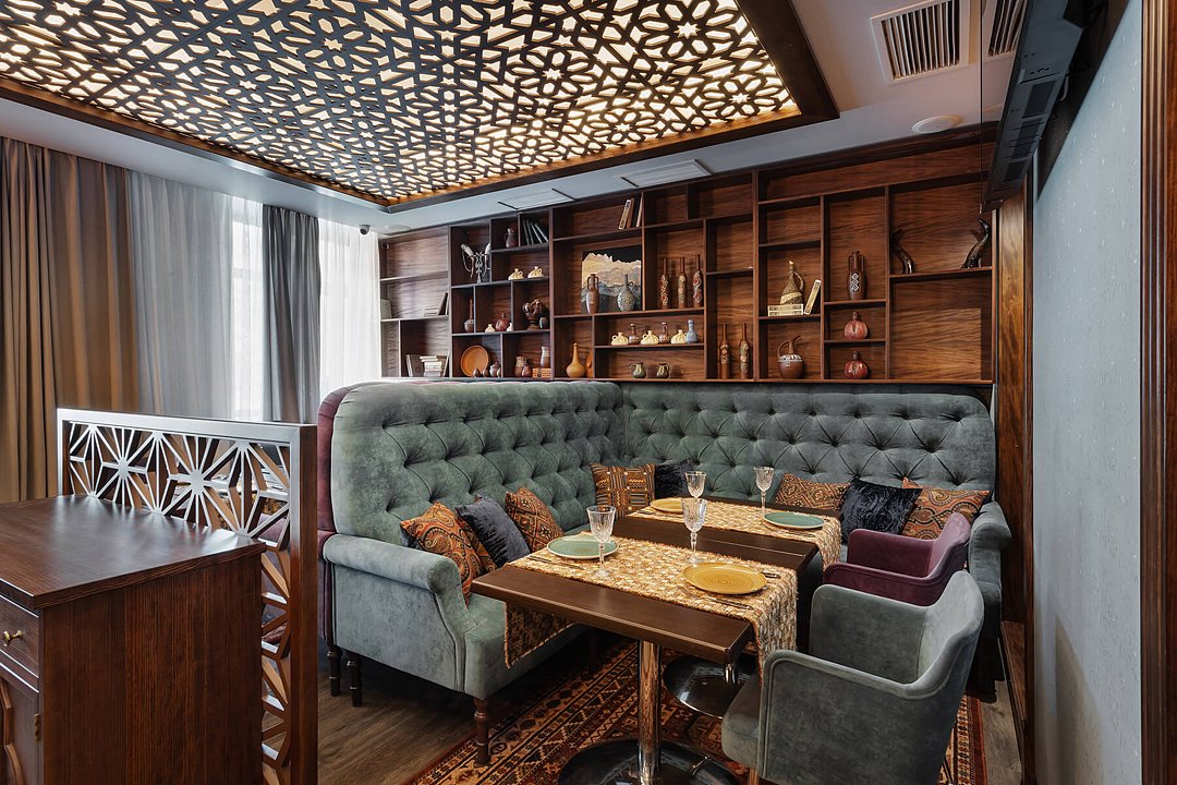 Для проведения свадебного торжества или иных праздничных мероприятий прекрасно подойдёт основной восточный зал «Хинкальной», который позволяет комфортно расположить до 40 персон.