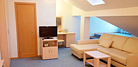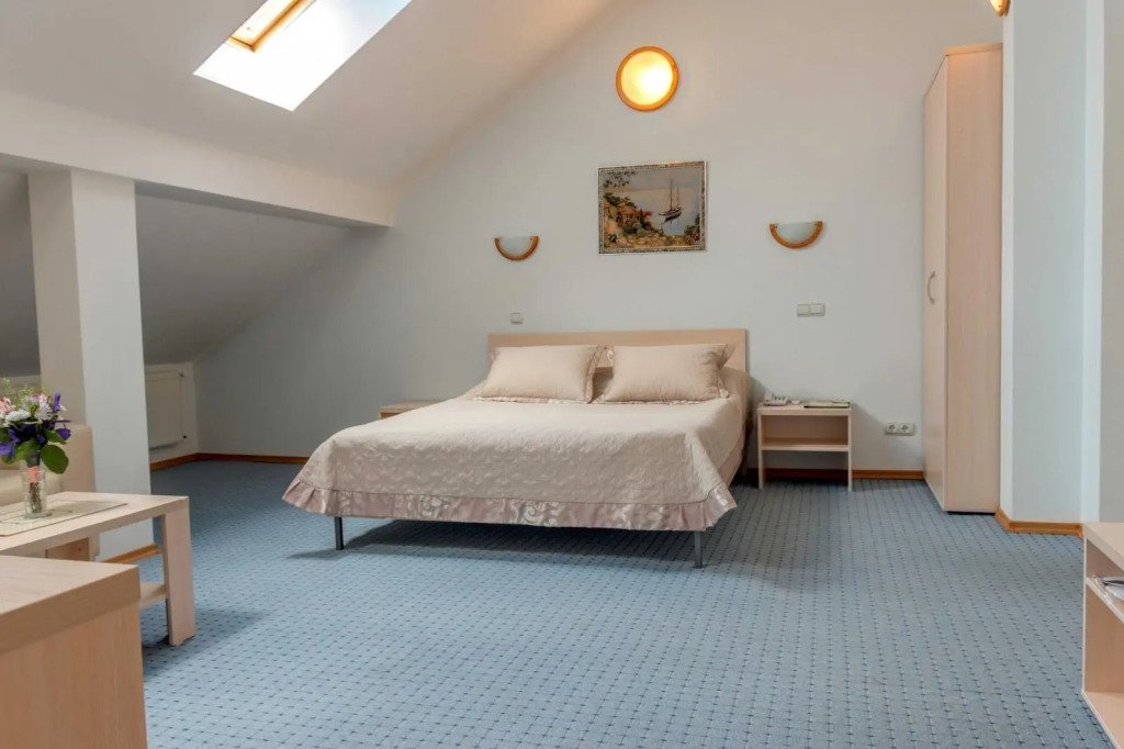 Номер уютно обставлен и оснащён необходимым, чтобы отдохнуть после долгого и насыщенного дня. Имеются телевизор. Оснащение зависит от выбранной категории номера.