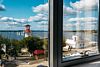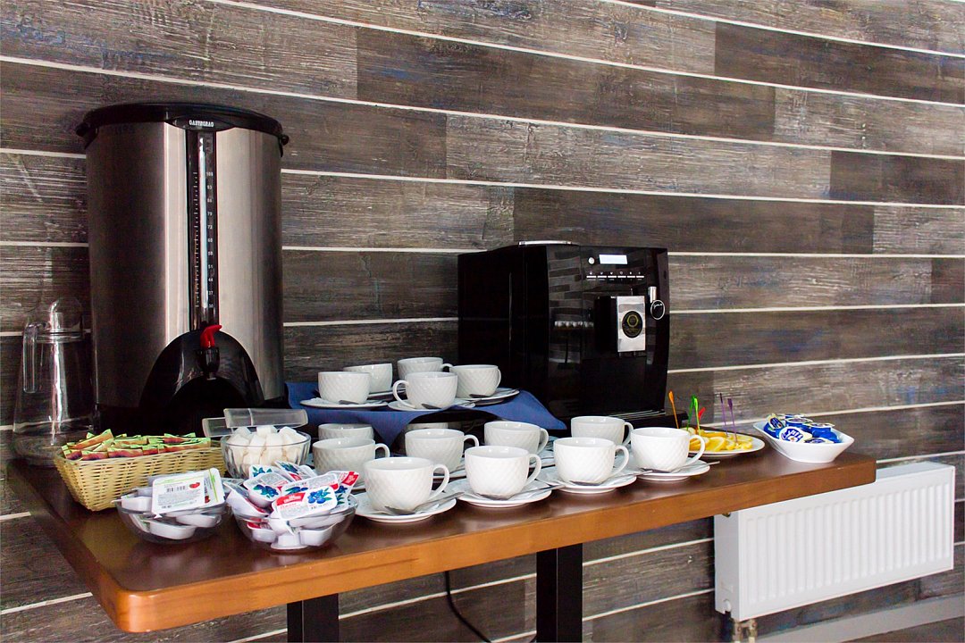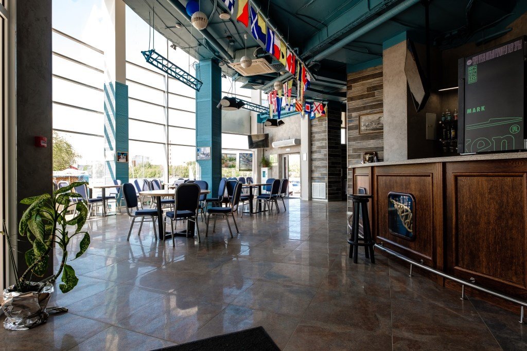Завтрак по шведской линии проходят на первом этаже в баре "Бросай Якорь". Здесь гостей ждет морская атмосфера, панорамные окна, богатая чайная карта и ароматный кофе.
