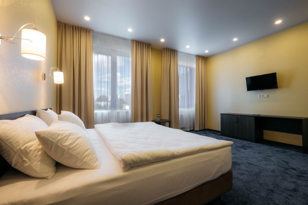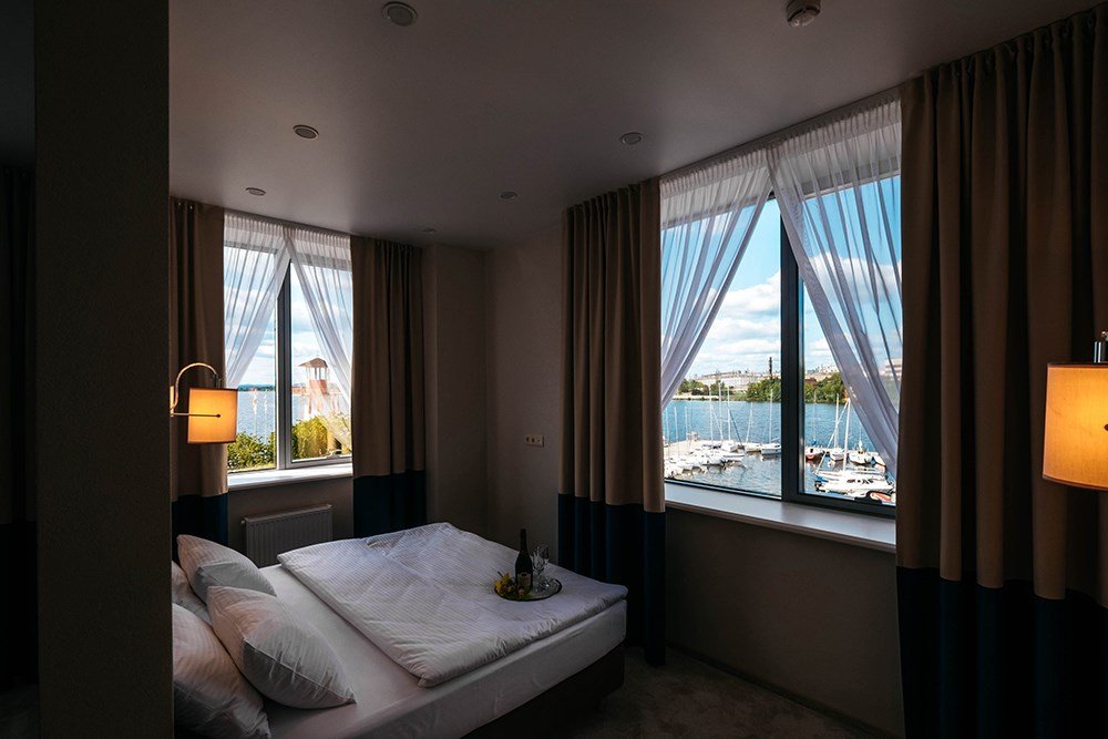 Просторный двухкомнатный номер категории «Люкс» с видом на Верх-Исетский пруд площадью 32 кв.м., для проживания до 4х гостей. Номер выполнен в светлых тонах.Услуги и удобства