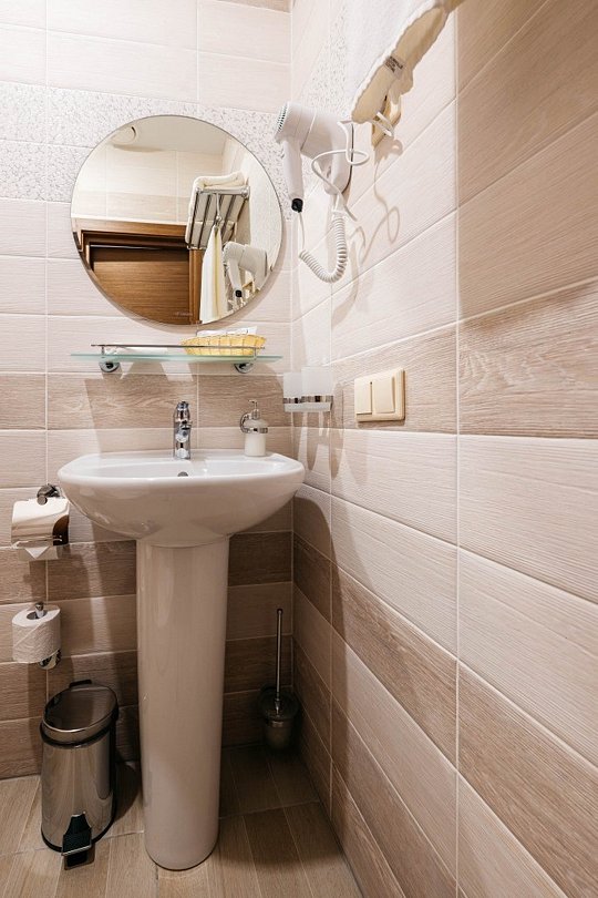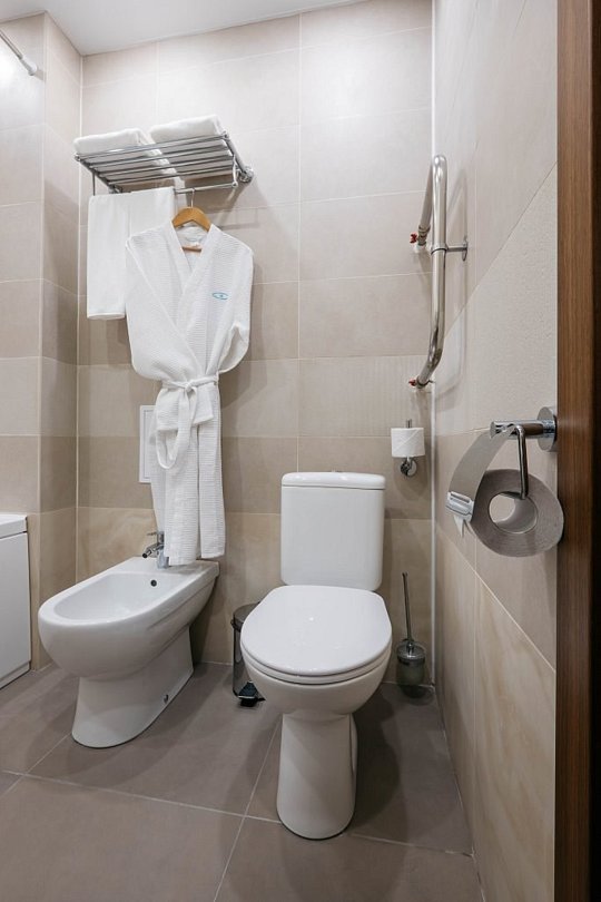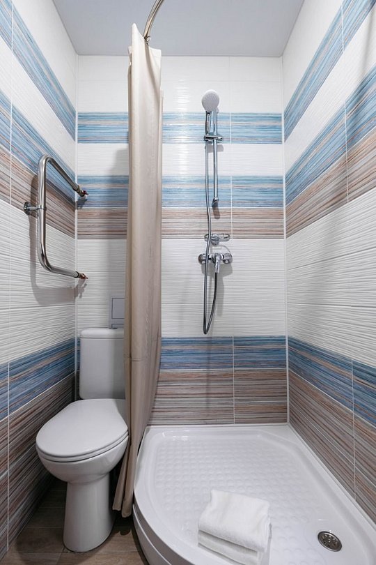 Номер площадью 17 кв.м. для комфортного проживания до 3х человек. На ваш выбор: 1 двуспальная кровать либо 2 односпальные. Также есть номер для гостей с ограниченными возможностями площадью 27 кв.м. Выполнен в современном стиле в голубо-бежевых тонах.Услуги и удобства