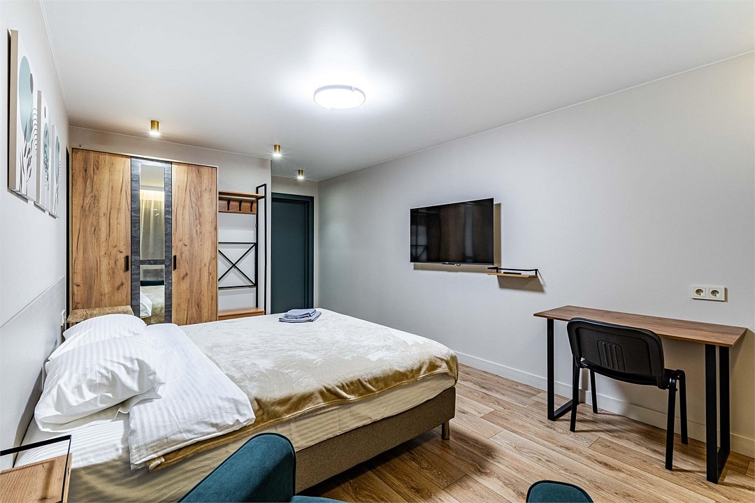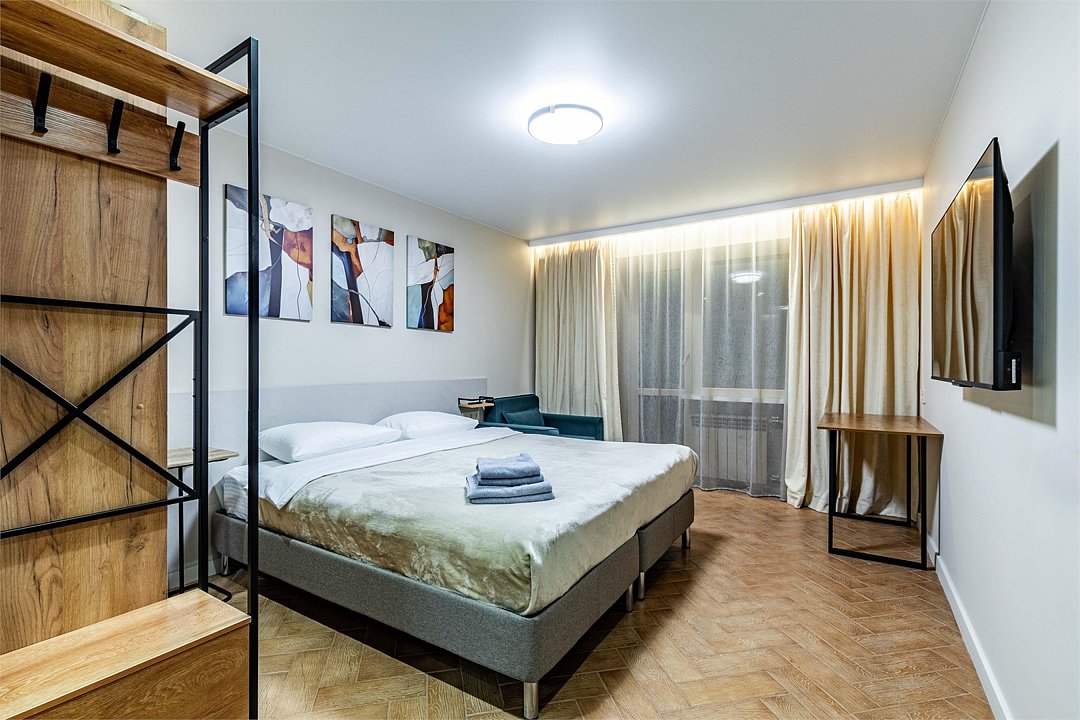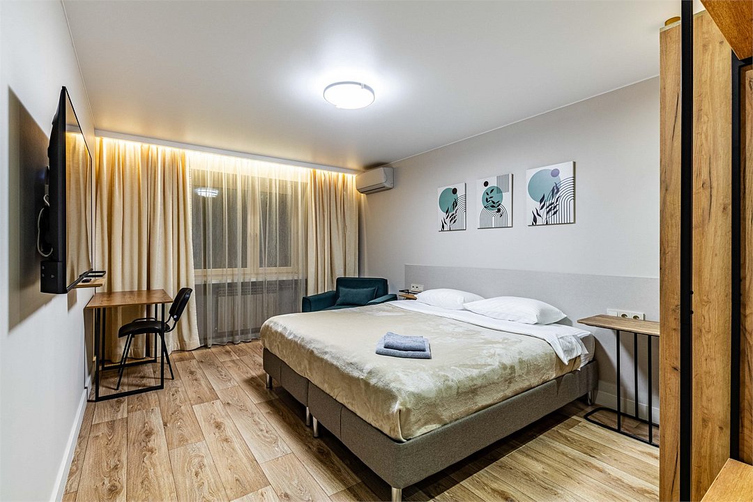 Комната-студия в трехкомнатной квартире с новым ремонтом. Расположение в районе Парковый , в пешей доступности от ЦПКИО им.Маяковского. Комната имеет небольшой балкончик с зоной отдыха. Для вашего удобства просторная кухонная зона общего пользования с выходом на балкон. Оборудованные санузлы расположены вне комнаты. Комфортный бесключевой доступ с электронными замками.Услуги и удобства