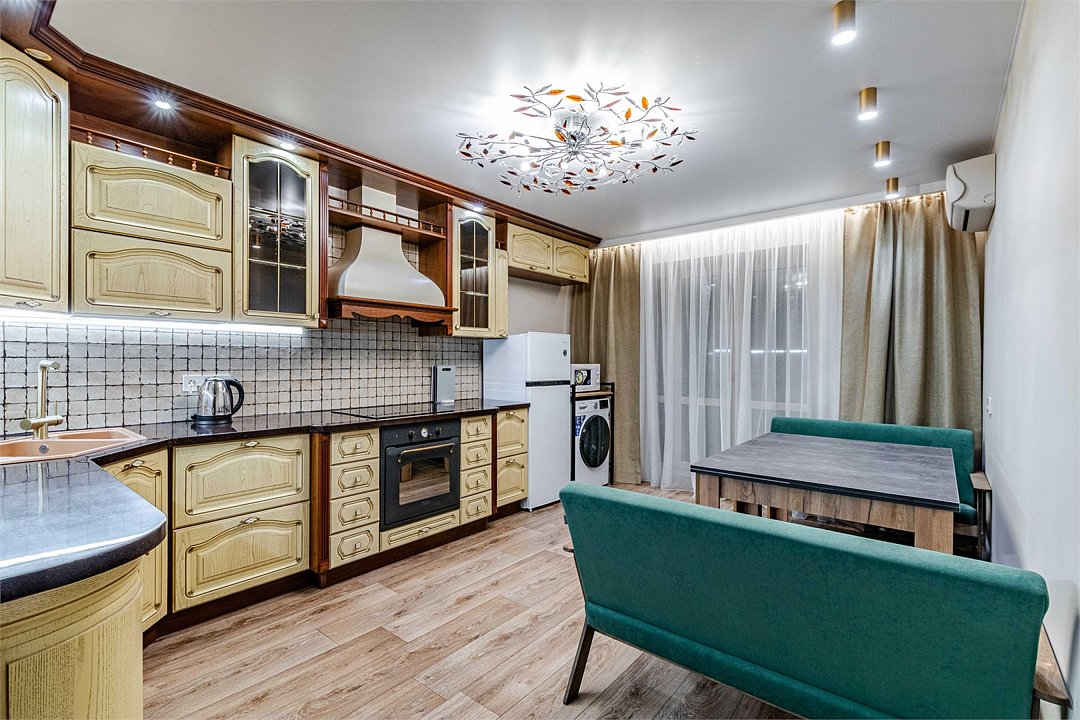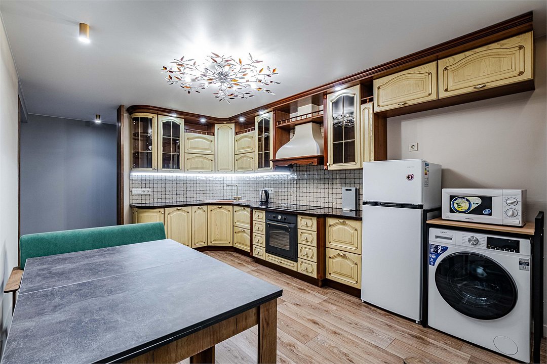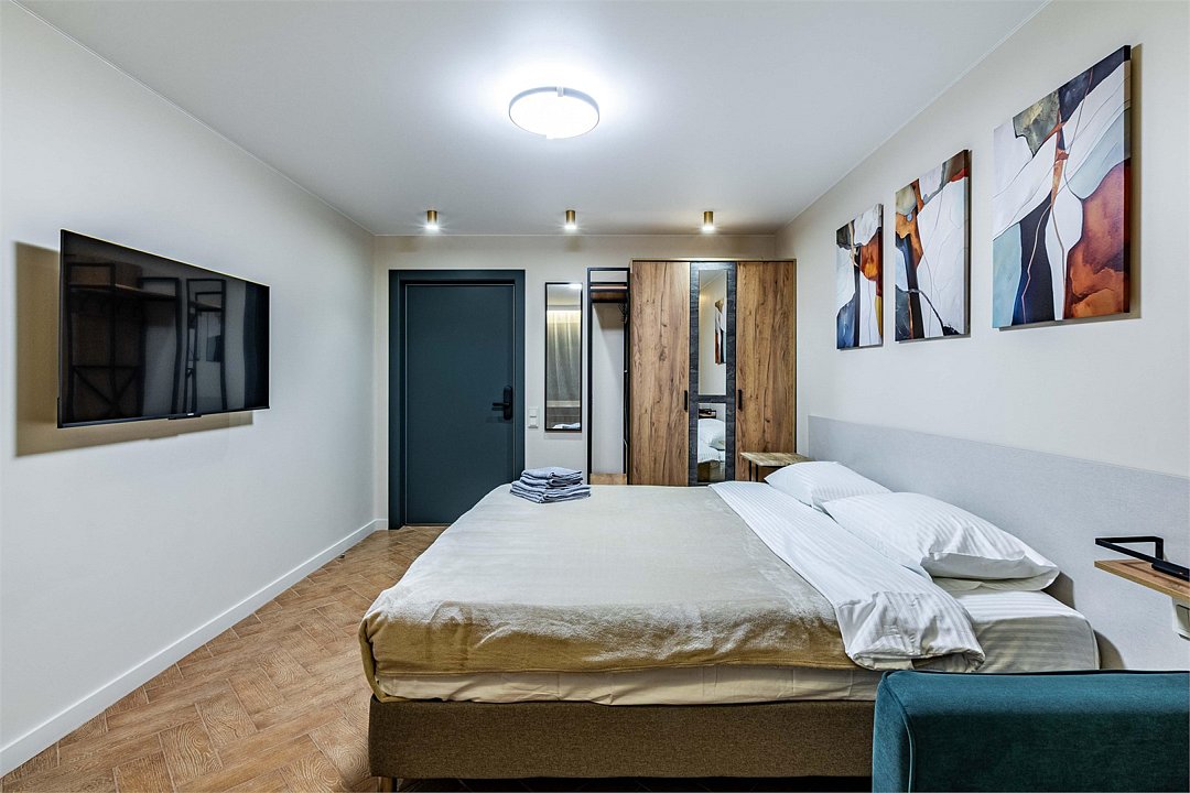 Wi-Fi, холодильник, кондиционер, фен, электронные замки, плита для приготовления пищи, утюг, душевая кабина, санузел, водонагреватель, банные полотенца, косметические средства, балкон, кровать «Queen size», две односпальные кровати, гладильная доска, ортопедический матрас, шкаф для одежды, вешалки, письменный стол, зеркало, чайный набор, стиральная машина, чайник, унитаз, питьевая вода, обеденная зона, душ, вид на город, кресло, вид во двор, кухонная посуда, стаканы, столовые приборы, две ванные комнаты, стул, туалет, сушилка для белья, телевизор с плоским экраном, телевизор со Smart TV, номер для некурящих, духовой шкаф, морозильная камера, духовка, кресло-кровать, мыло, онлайн-регистрацияВ квартире