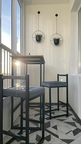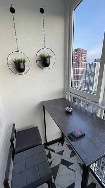 - На просторной лоджии с освещением ещё одно место отдыха с барным столом и стульями, чтобы вы могли с комфортом насладиться видом на город в любое время суток. Если вы курите, то просим воспользоваться бездымной пепельницей, соблюдая пожарную безопасность.