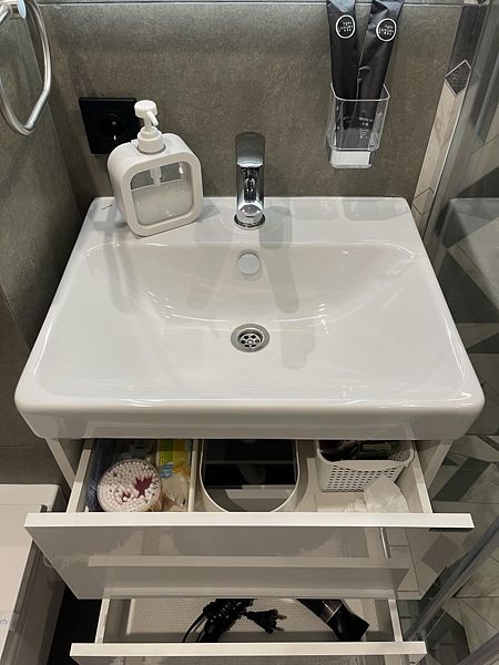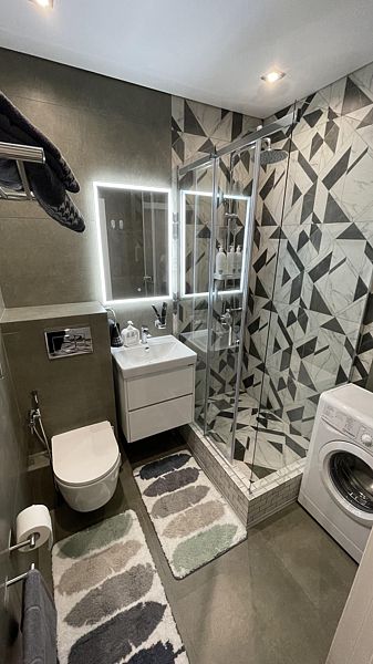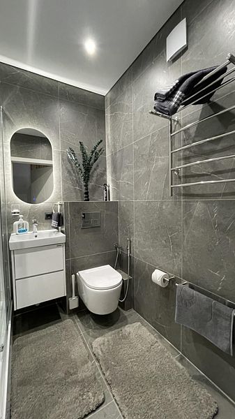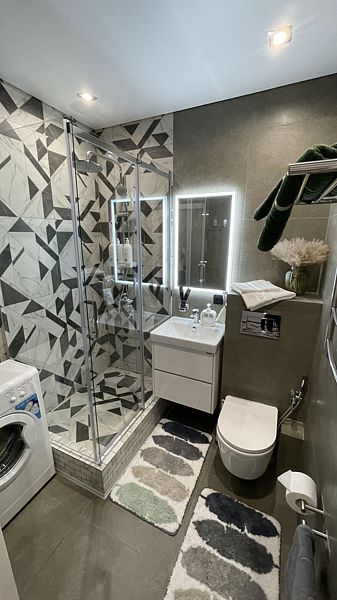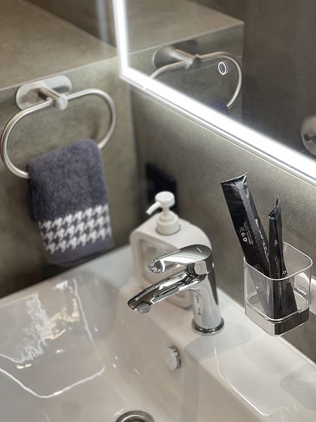 - Санузел с душевой, мойдодыр, унитаз, гигиенический душ — всё продезинфицировано! Для вас стиральная машина с экспресс стиркой и другими программами, включая удаление пятен. На электрическом полотенцесушителе вас ждут комплекты теплых полотенец в индивидуальной упаковке прямо из прачечной. В наличии все средства личной гигиены, фен для волос.