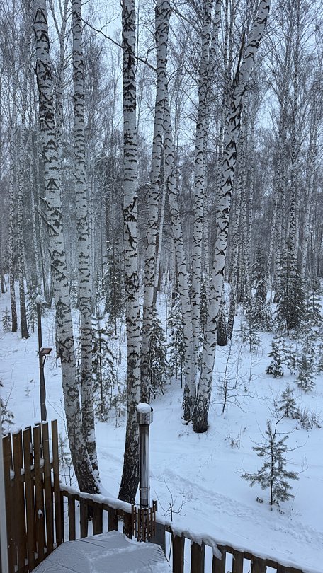 Деревянная двухэтажная баня в стиле хай-тек. Панорамные окна, великолепная терраса, большая огороженная территория среди сосен и берез на которой расположен банный чан и в теплое время бассейн, с территории бани собственный выход в лес к прогулочному терренкуру.