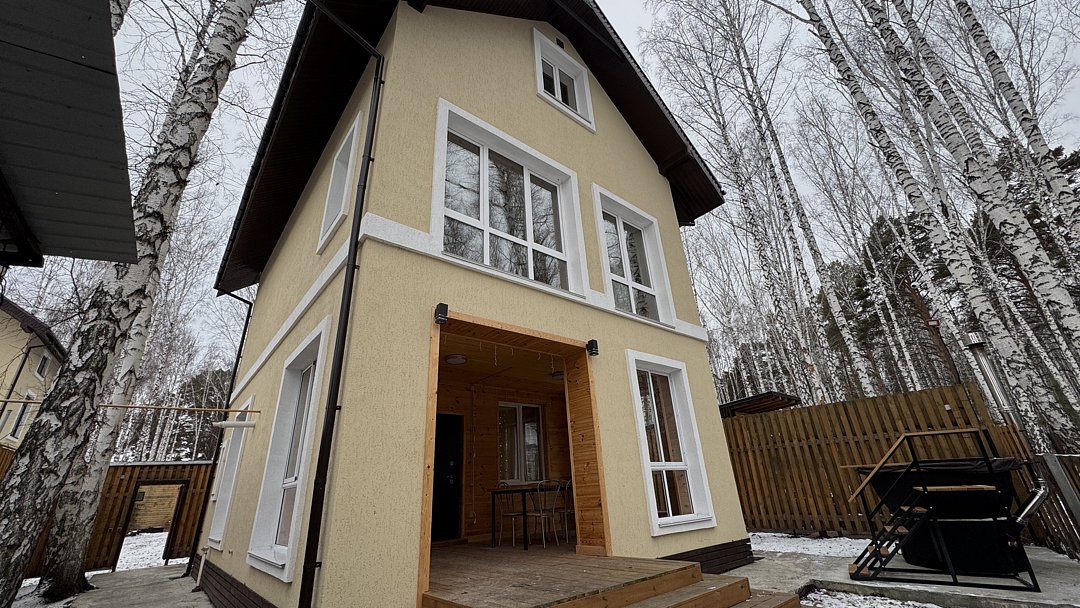 Уютный двухэтажный деревянный дом в современном стиле хай-тек, расположенный на огороженной территории среди сосен и берёз. Панорамные окна, терраса для отдыха, собственный выход в лес к прогулочному терренкуру.