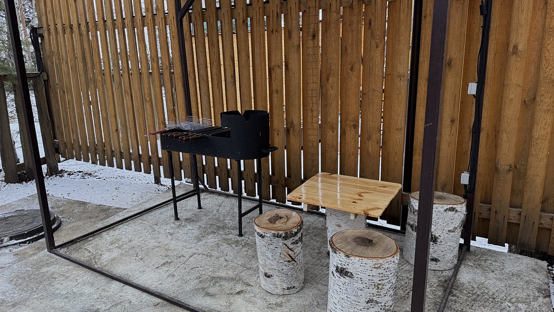 У каждого домика есть своя терраса с уличной мебелью и полностью оборудованная мангальная зона.