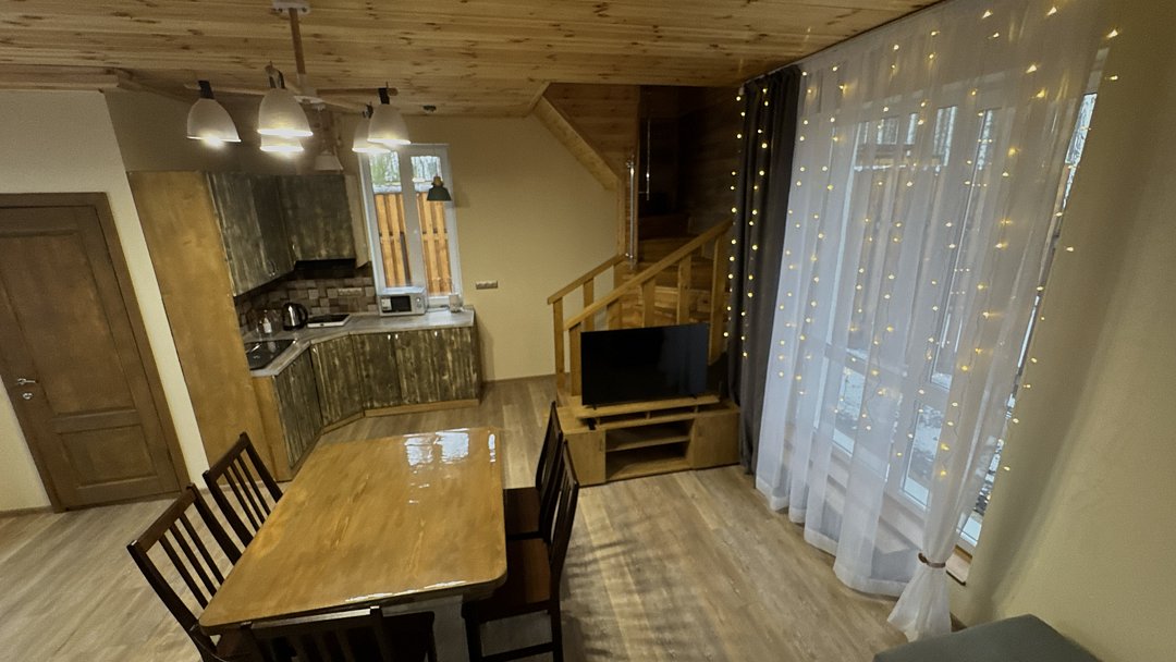 На территории расположены четыре деревянных дома с удобствами, витражными окнами, террасами и беседками. У каждого дома есть свой участок, отдельный выход в лес и удобная парковка. Кроме того, доступно две бани с чаном и бассейном. Гости могут начать день с вкусного завтрака, приготовленного из натуральных продуктов.