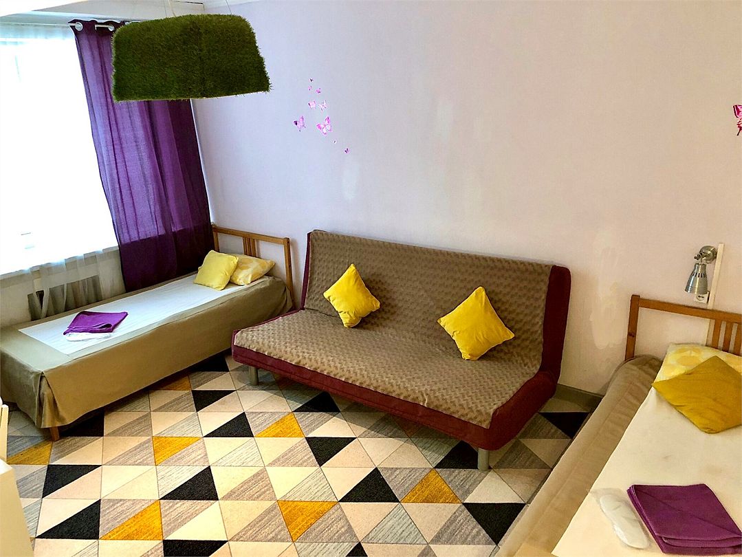 Уютный номер площадью 17 кв.м. Предназначен для проживания 1-3 человек. В номере: одна двуспальная кровать и одна односпальная кровать, бесплатный WiFi. ТВ