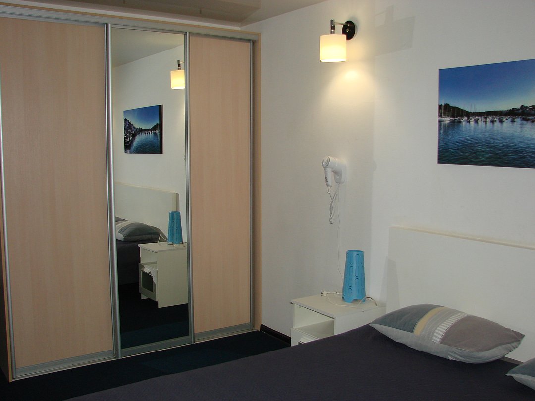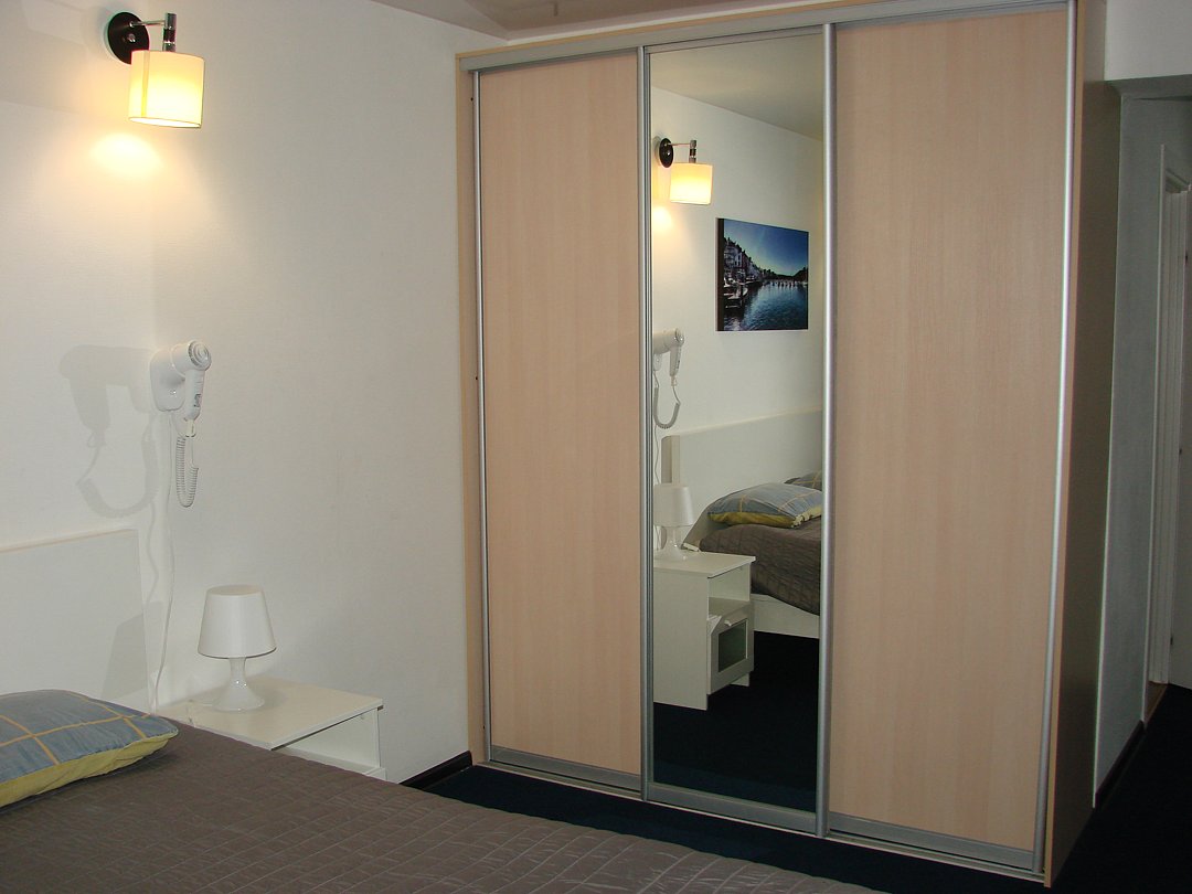 Вешалка, зеркало, прикроватные тумбочки, стол, стул, шкаф-купе.