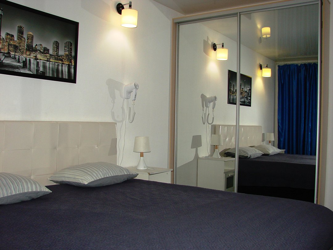 *Фальш-окно, вешалка, зеркало, прикроватные тумбочки, стол, стул, шкаф-купе.