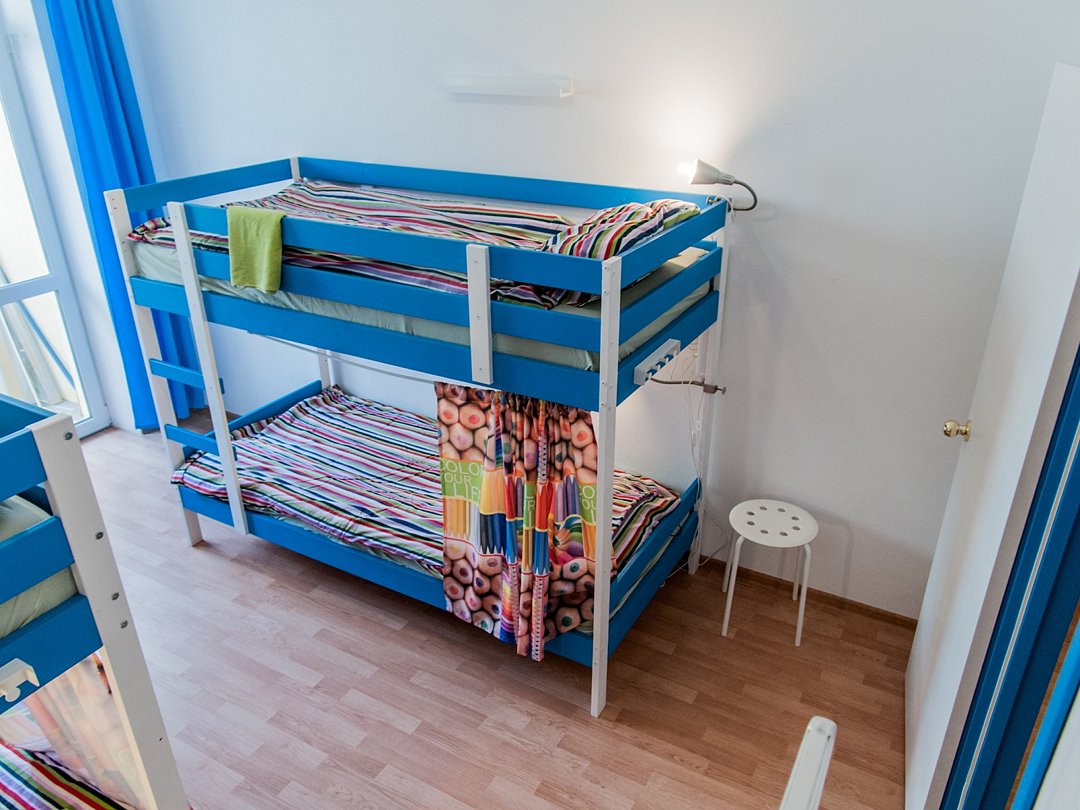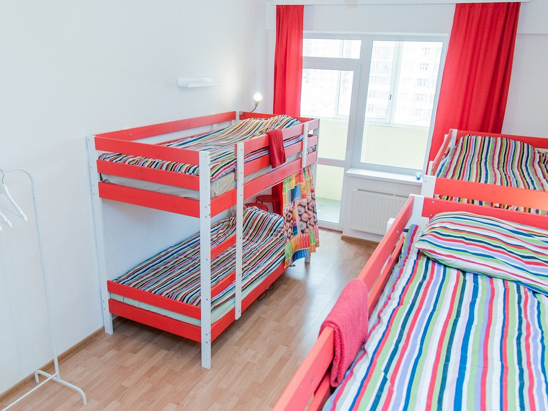 Женская четырёхместная. Площадь :16 кв.м. В комнате - 2 двухъярусные кровати, стол, стулья, Комната сдается по местам. В комнате: - Бесплатный Wi-Fi - Чистое постельное белье и полотенца - Ежедневная уборка - Индивидуальное освещение к каждой кровати В распоряжении гостей полностью оборудованная кухня и отдельная гостиная с телевизором и рабочей зоной с гостевым компьютером. А также 3 санузла. На кухне; - плита - микроволновка - холодильник - посуда и столовые приборы - бесплатные чай Также бесплатно можно воспользоваться утюгом, гладильной доской, феном и индивидуальным запирающимся ящиком.В номере