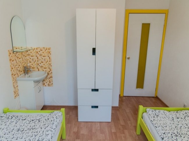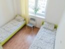 2 местная комната. Площадь: 16 кв. м. В комнате - 2 односпальные кровати, шкаф, стулья, умывальник. А также: - Бесплатный Wi-Fi - Чистое постельное белье и полотенца - Ежедневная уборка - Индивидуальное освещение к каждой кровати В распоряжении гостей полностью оборудованная кухня и отдельная гостиная с телевизором и рабочей зоной с гостевым компьютером. А также 3 санузла. На кухне; - плита - микроволновка - холодильник - посуда и столовые приборы - бесплатные чай Также бесплатно можно воспользоваться утюгом, гладильной доской, феном.В номере