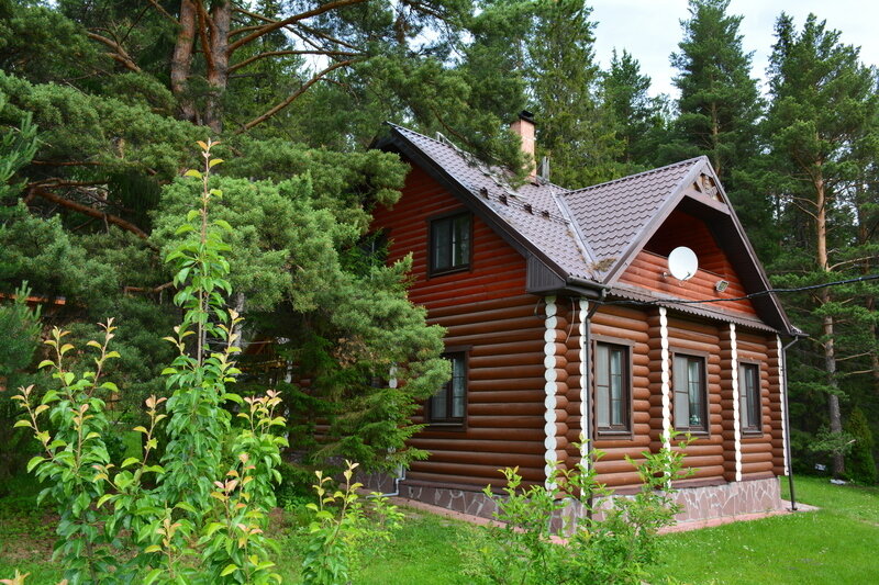 Коттедж — дом на 8 гостей расположен на опушке векового леса. На первом этаже комната с двуспальным диваном, на втором этаже 3 спальни с двуспальными кроватями.