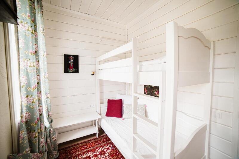 1 комната: 1 двуспальная кровать, 1 односпальная кровать вторым ярусом.