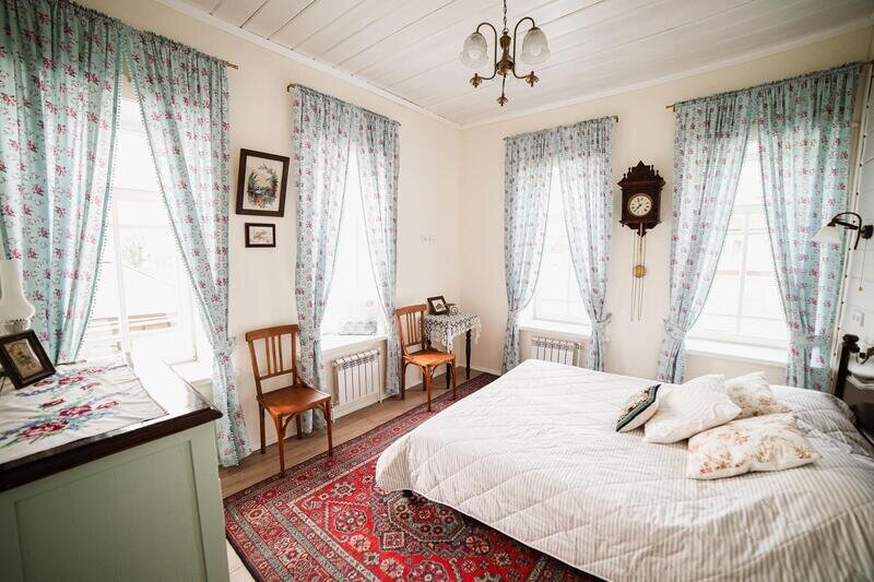 3-й этаж: С двумя просторными четырёхместными номерами, в одном из которых предусмотрено два балкона с выходом в разные стороны к прекрасному виду как на само село, Мариинский пруд, и легендарную Угольную гору, так и с другой стороны на густой еловый лес всего в нескольких метрах от отеля!