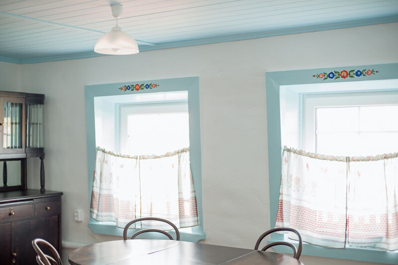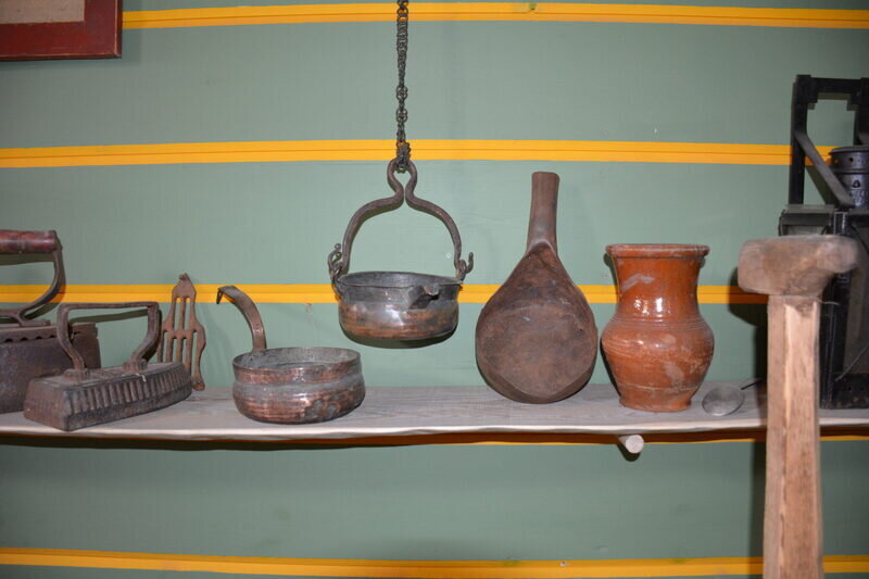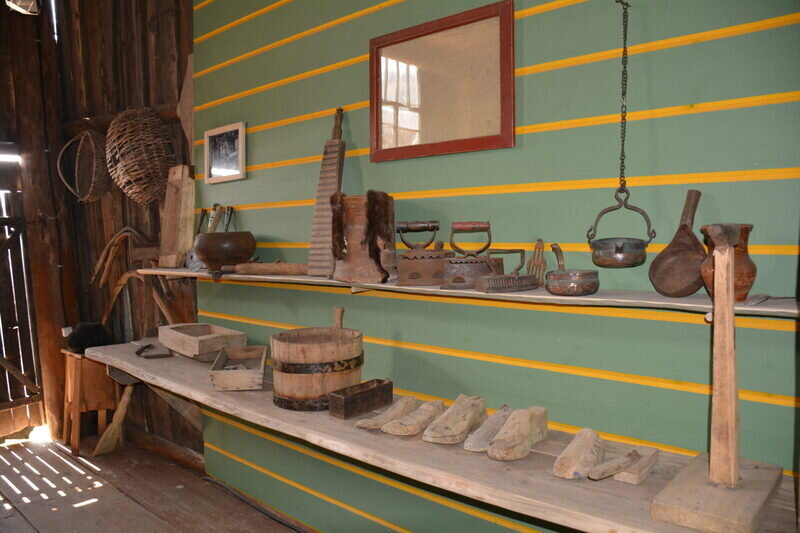 Во дворе усадьбы расположена экспозиция сельского быта: ремесленный инструмент, утварь и предметы старины. Вход платный.