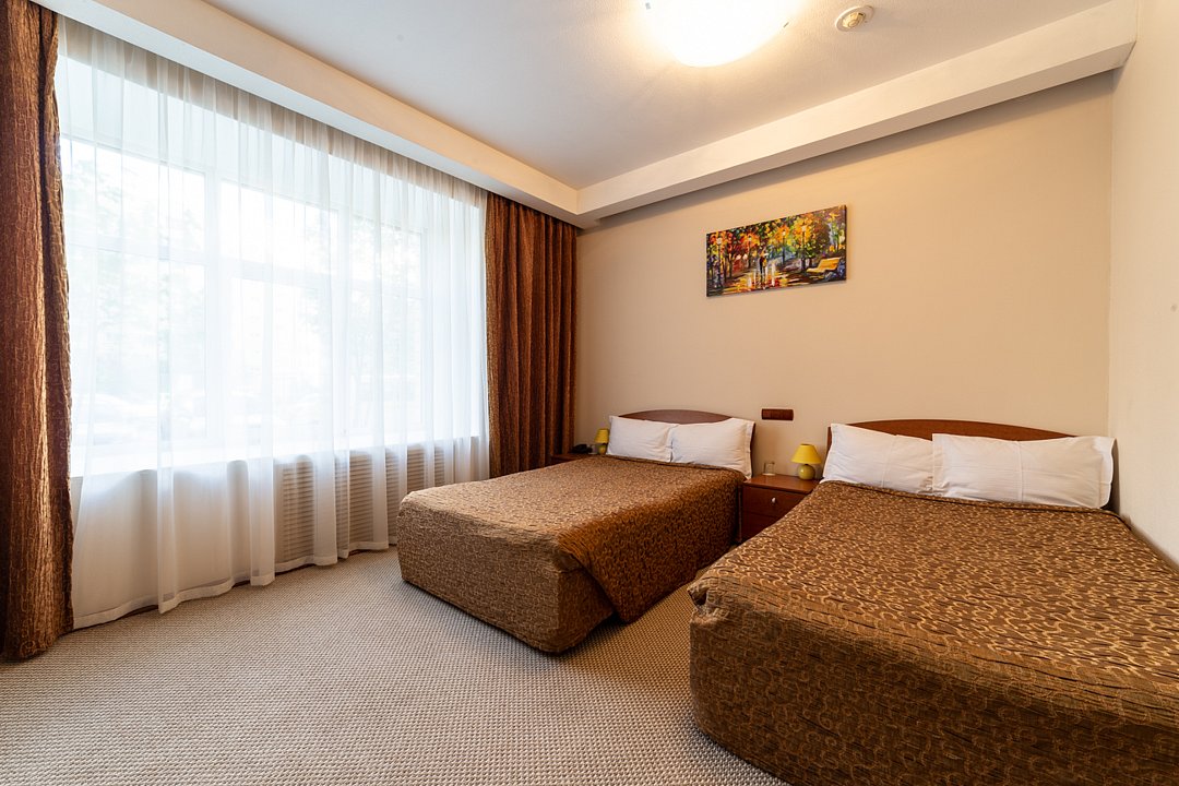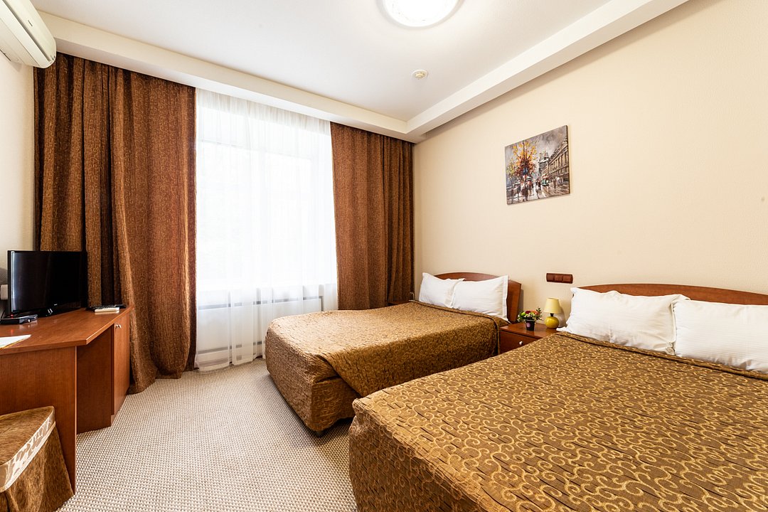 Две полутороспальные кровати, одна диван-кроватьВ гостиничном номере