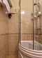 В ванной комнате: душевая кабина, фен, тапочки, мыло, шампунь.