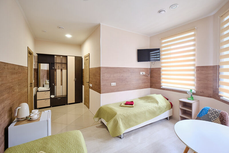 В отеле представлены одноместный, двухместный и семейный номер, в котором возможно размещение до 4-х человек. Есть вся необходимая мебель, телевизор. Постельное белье и полотенца предоставляются. Ванная комната оснащена туалетными принадлежностями и косметическими средствами.